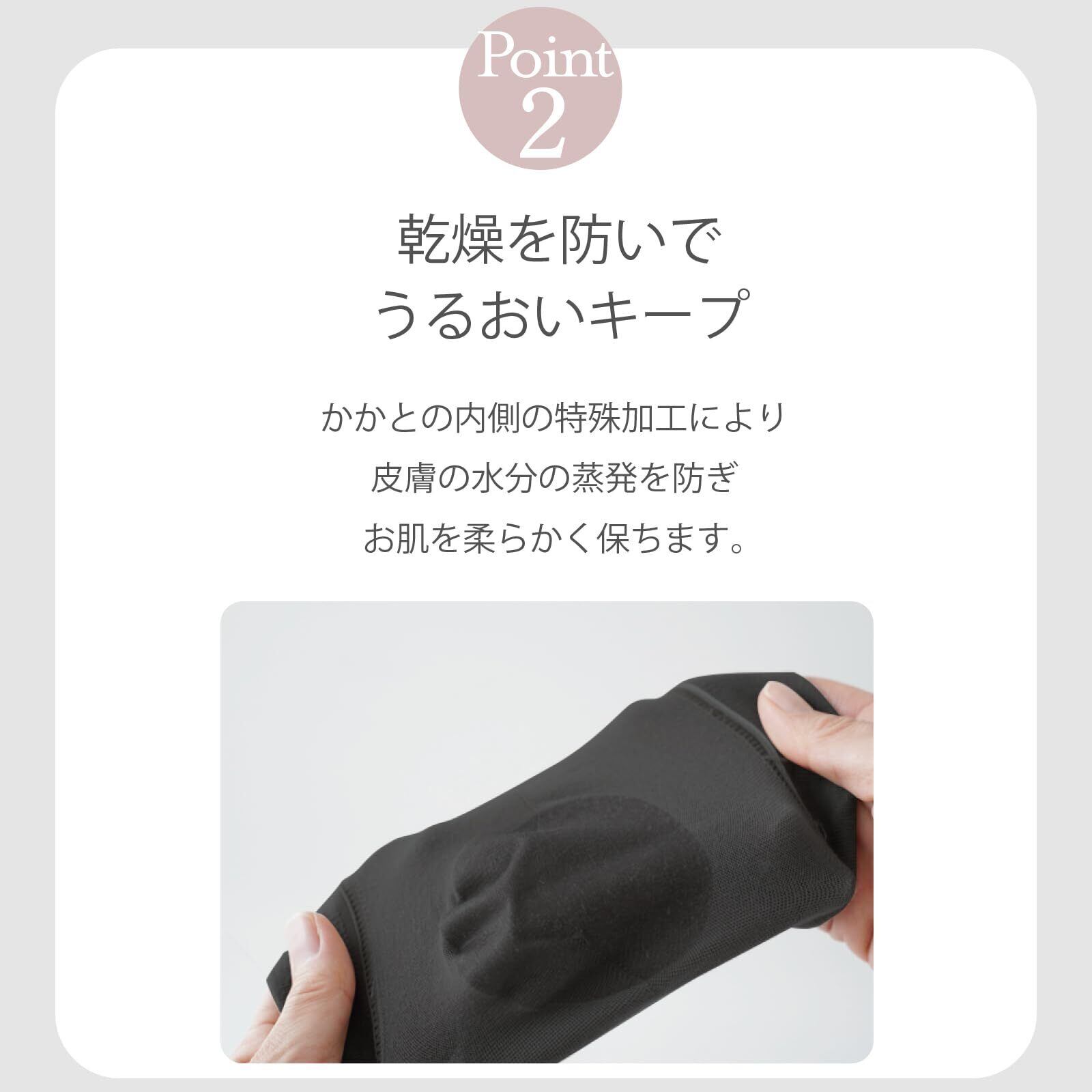【かかとケアソックスで保湿クリームをそのままパック】保湿クリームを塗ったあとのかかとを、特殊加工のソックスで保湿成分ごとパックしお肌を柔らかく保ちます。寝るときに履いておけば、翌朝にはふんわり踵の出来上がり。