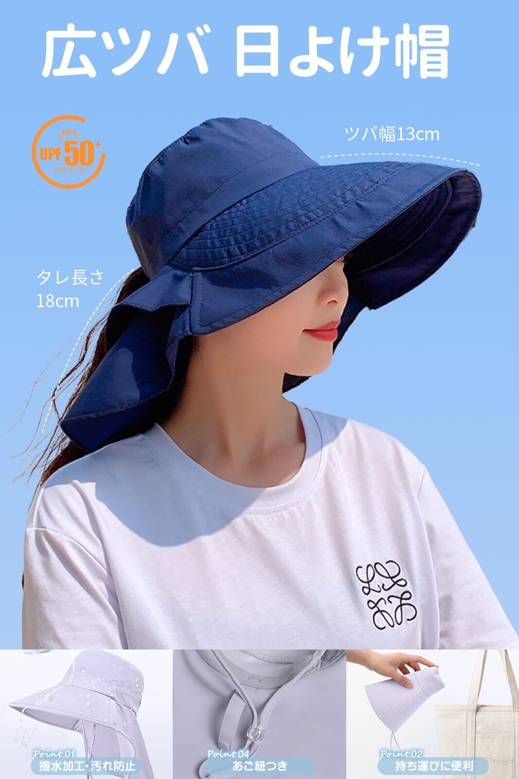 [LeafIn] レディース 帽子 日よけ帽子 UVカット帽子 シェードハット つば広ハット あご紐 調節可能 紫外線対策 通気 夏 秋 アウトドア 旅行用 釣り 登山 ウォーキング ポニーテール穴 サファリハット 8062