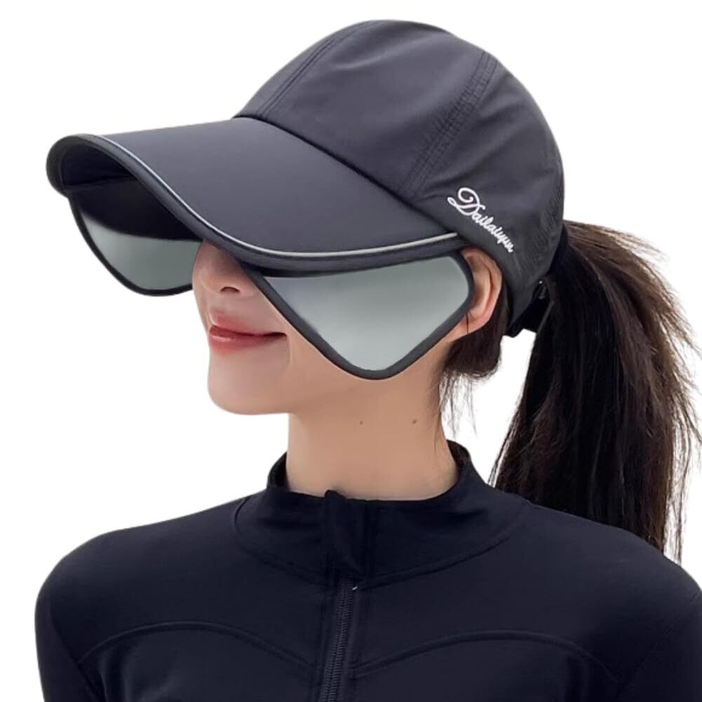 [ALVEIN] ポニーテールキャップ 紫外線対策 UPF50+ つば広 深め ゴルフ テニス サイド付き 調整可能 サンバイザー
