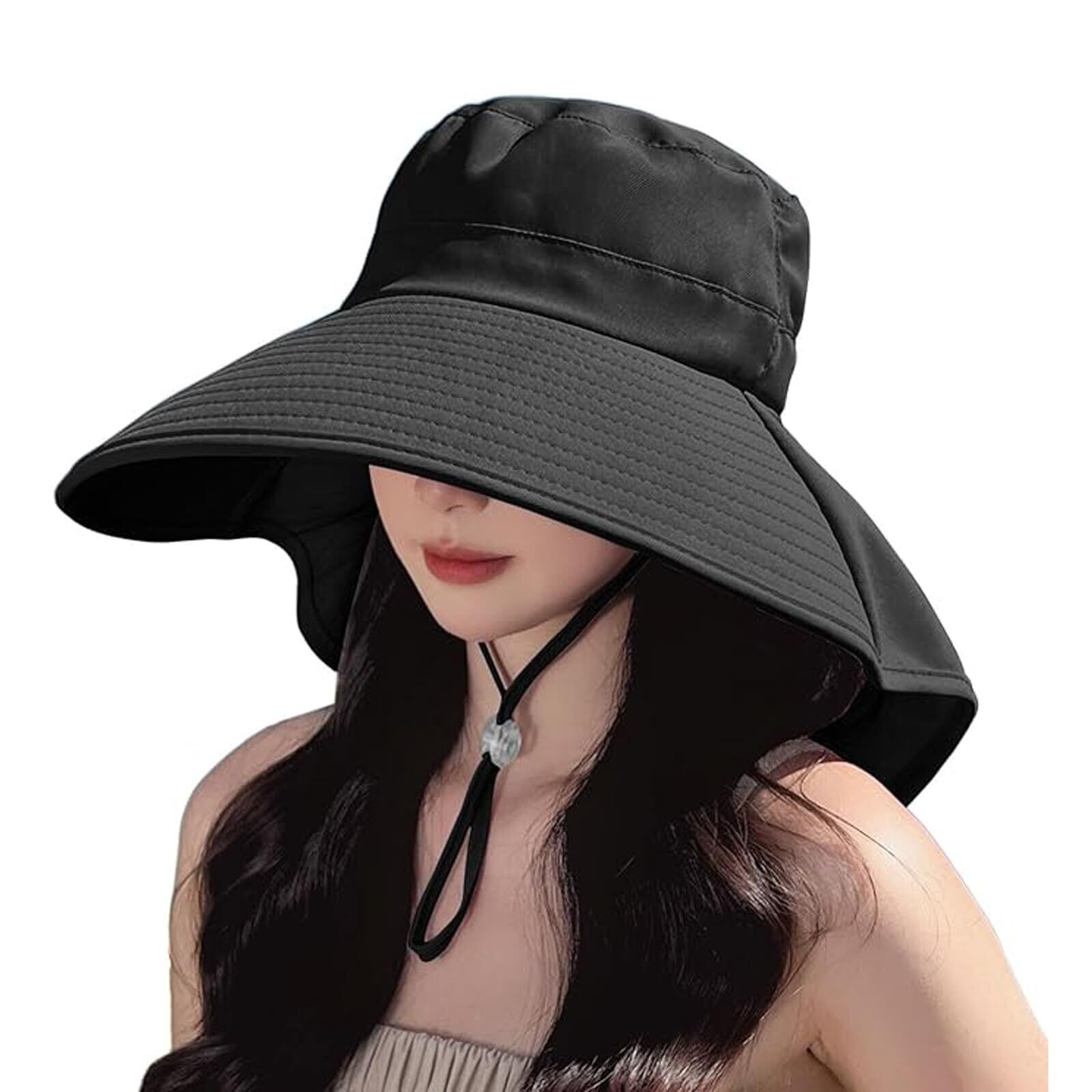 UPF50+ UV保護サンバイザー, つば広帽子, アウトドア用, 調節可能ドローストリング付き, 防水, ブラック