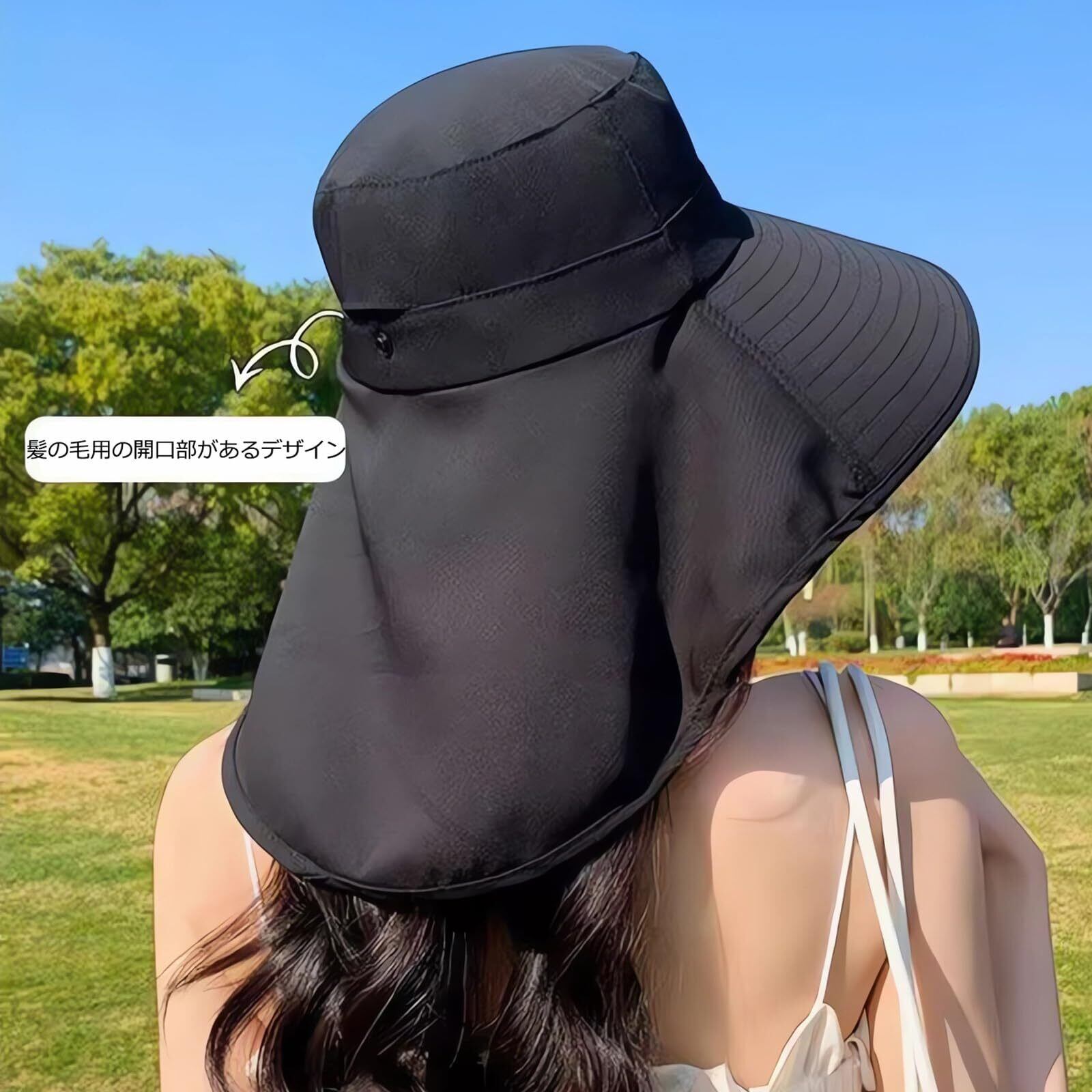 ■【広いつばでしっかり日よけ!】つばの広さが特徴で、顔や首をしっかりカバーします。この広いつばにより、紫外線からしっかりと肌を守り、安心して外出を楽しむことができます。