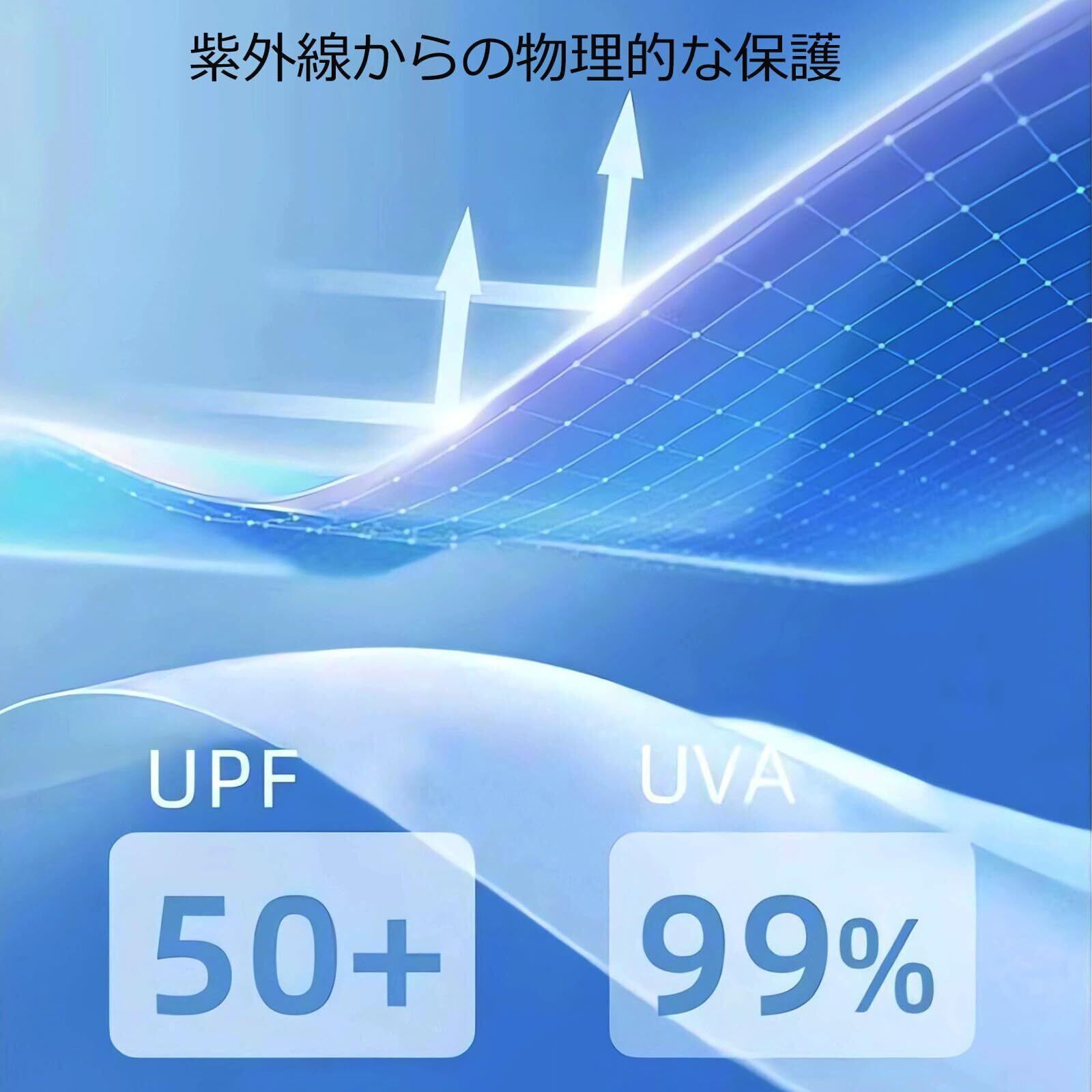 UVカット機能: UPF50+の高い紫外線防御指数と99%のUVAカット率で、強力な日焼け防止効果を実現
