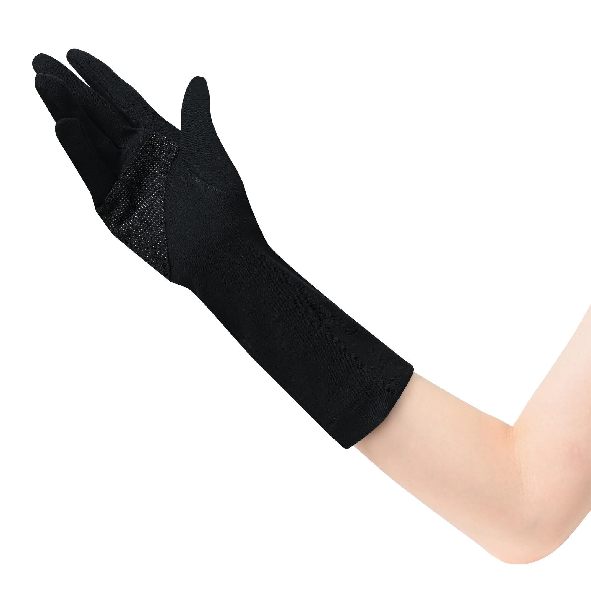 おたふく手袋 夏用アームカバー[コットン100% レディース用 スベリ止め付 セミロング] UV-3231 ブラック フリーサイズ