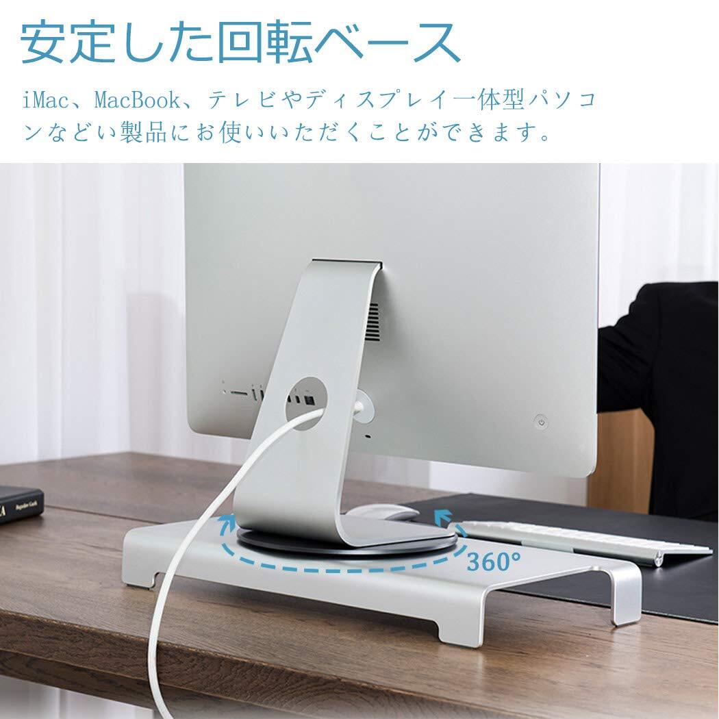 ■【360°の自在な回転で便利さ倍増!】この回転モニターベースは、360°回転可能なため、自由に角度を調整して最適な視野を確保できます。ラップトップやiMac、液晶モニターを使用する際に、快適な作業をサポートします。