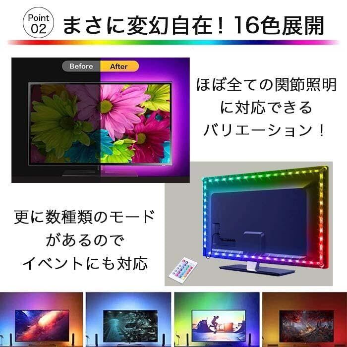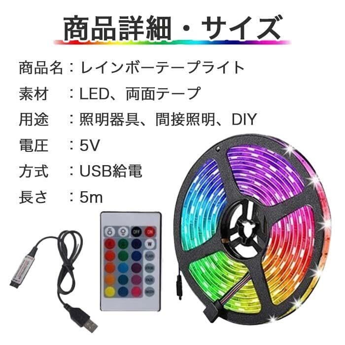 テープライト 5m usb ライト テープ リモコン 間接照明 調光調色 切断可能 高密度 マルチカラー 両面テープ 防水 16色 寝室 リビング キッチン パーティー クリスマス ハロウィン