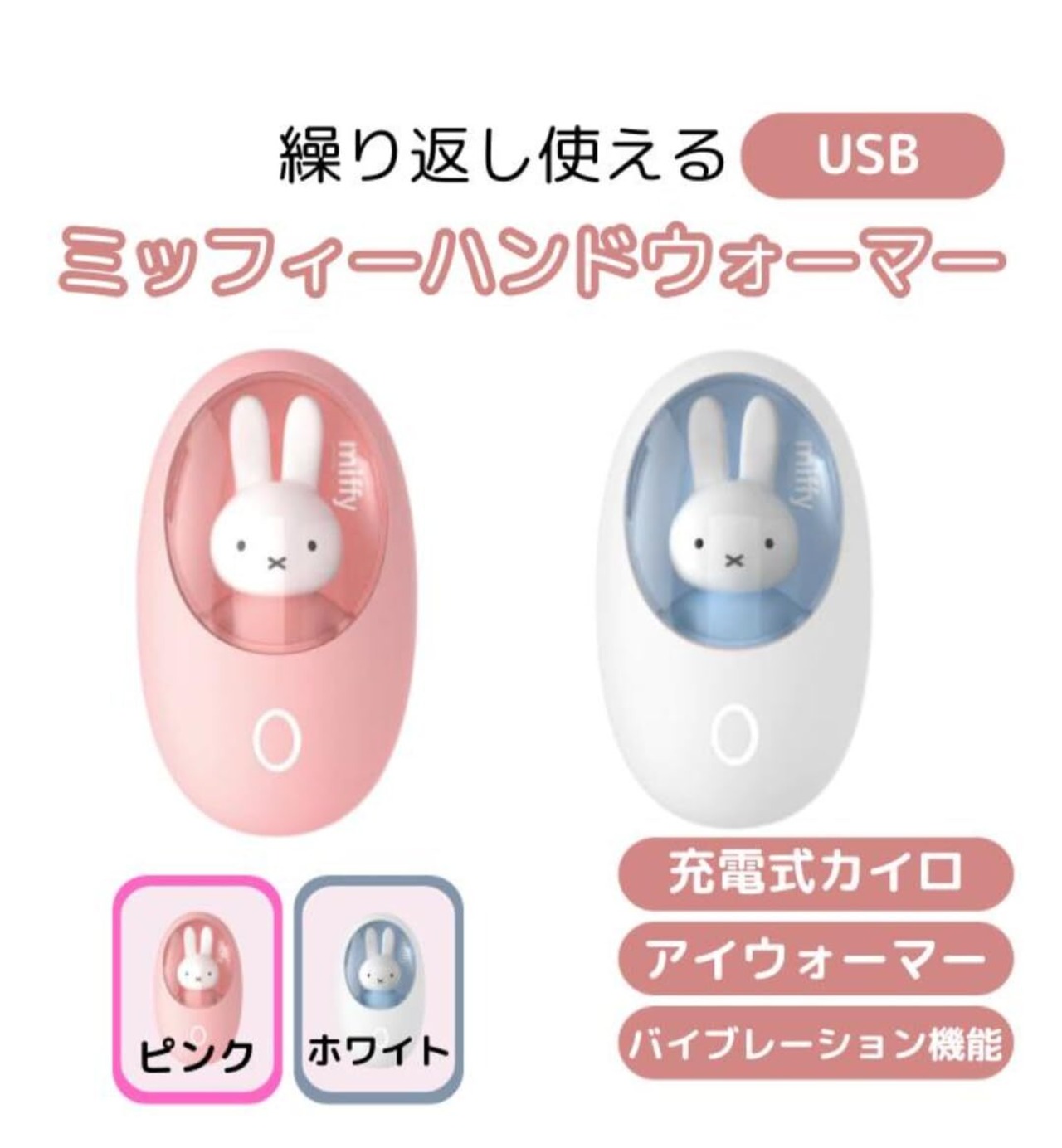 ■【かわいらしいデザインで温かさを!ミッフィーの電気カイロ】ミッフィーの卵型電気カイロは、冬の必需品として人気のアイテムです!シンプルでかわいいデザインが魅力的で、日常生活の様々なシーンで活躍します。手に持って心地よい温かさを感じながら、寒さを乗り越えて快適に過ごしましょう✨