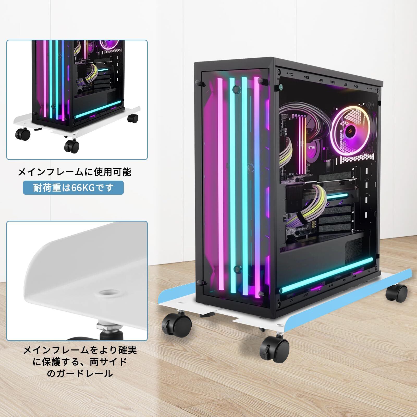 【耐久性&ストッパー付きキャスター CPU スタンド 】高い品質な棒鋼素材を使用し、耐荷重は66KGです。ストッパー付きのキャスターを備えているので、固定したい時の安定性は抜群ですので大事なコンピュータを置いても心配はありません。移動したい時はスイッチ一つで楽に移動できます。