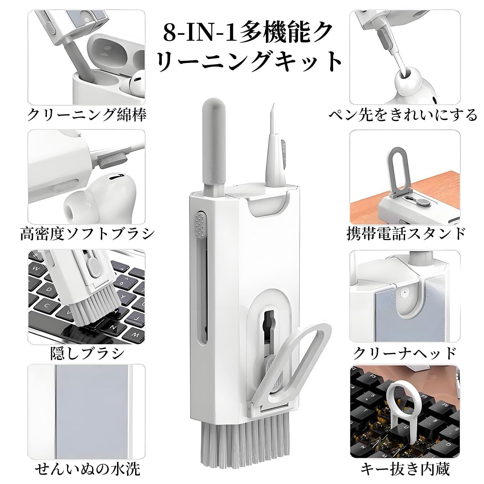 【 8-in-1の多機能】 綿棒、高密度軟毛ブラシ、ペン先クリーナー、携帯ホルダー、キー抜き器、毛抜きブラシ、繊維綿、洗浄液スプレーヘッドの8つの機能を一体化した!イヤホンの音孔の細かい隙間、キーボードのボタン間のほこり、携帯電話の画面の指紋、デスクトップのくずなど、さまざまな「小さな汚れ」にも簡単に対応できます。