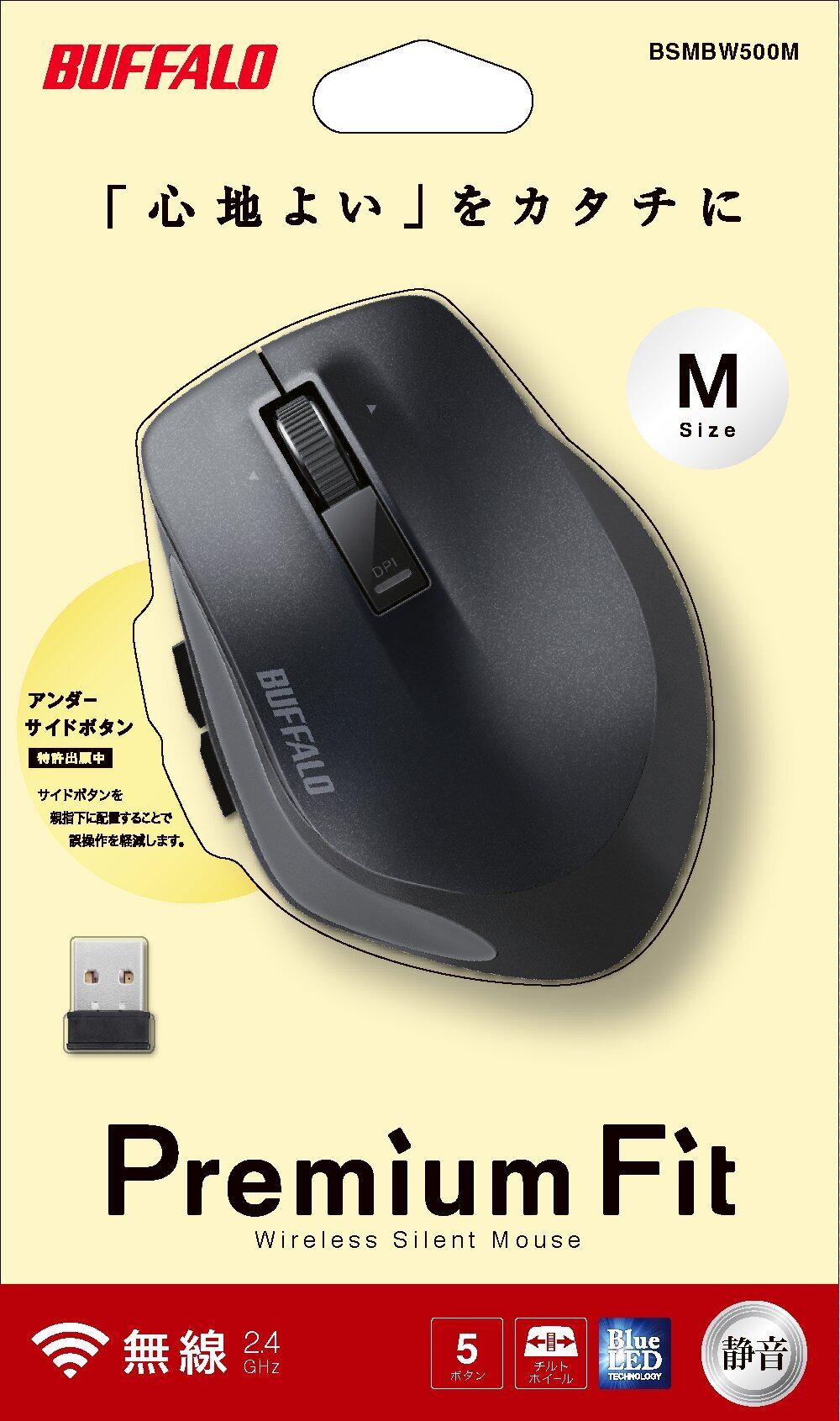 【在庫セール】バッファロー BUFFALO USBレシーバー 無線(2.4GHz) BlueLED プレミアムフィットマウス 静音 5ボタン Mサイズ ブラック BSMBW505MBK | SmartLiving+