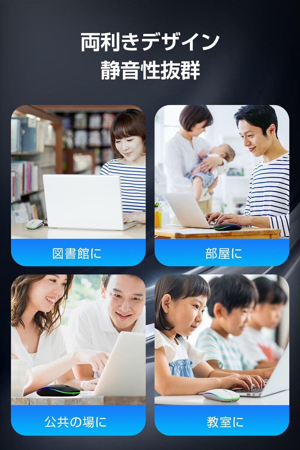 「この無線マウスで、快適でスタイリッシュなデジタルライフをお楽しみください!」