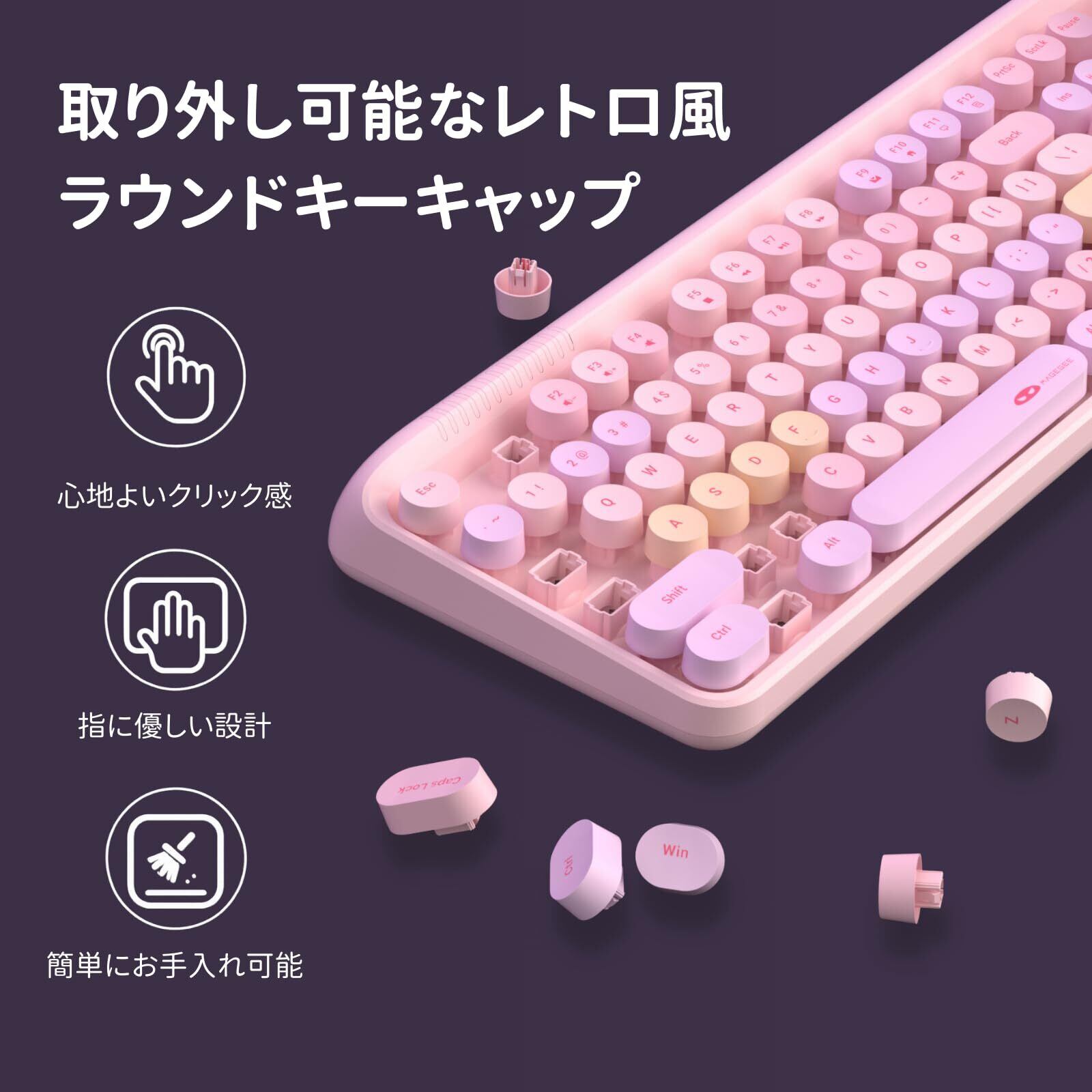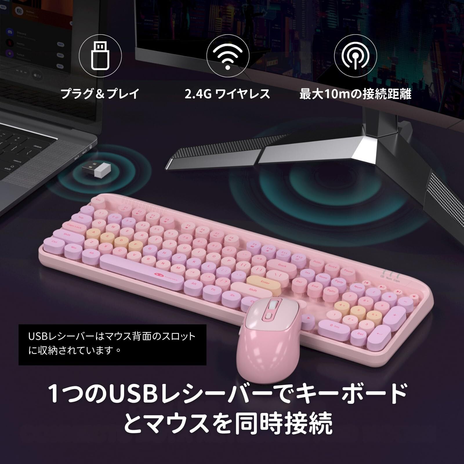 ■【レトロ可愛いデザインと高い機能性!】MageGeeのワイヤレスキーボードとマウスセットは、愛らしいピンクカラーであなたのデスクを華やかに演出!✨ ユニークなデザインが、在宅勤務やオフィスでも視線を集め、あなたのスタイルを引き立てます。