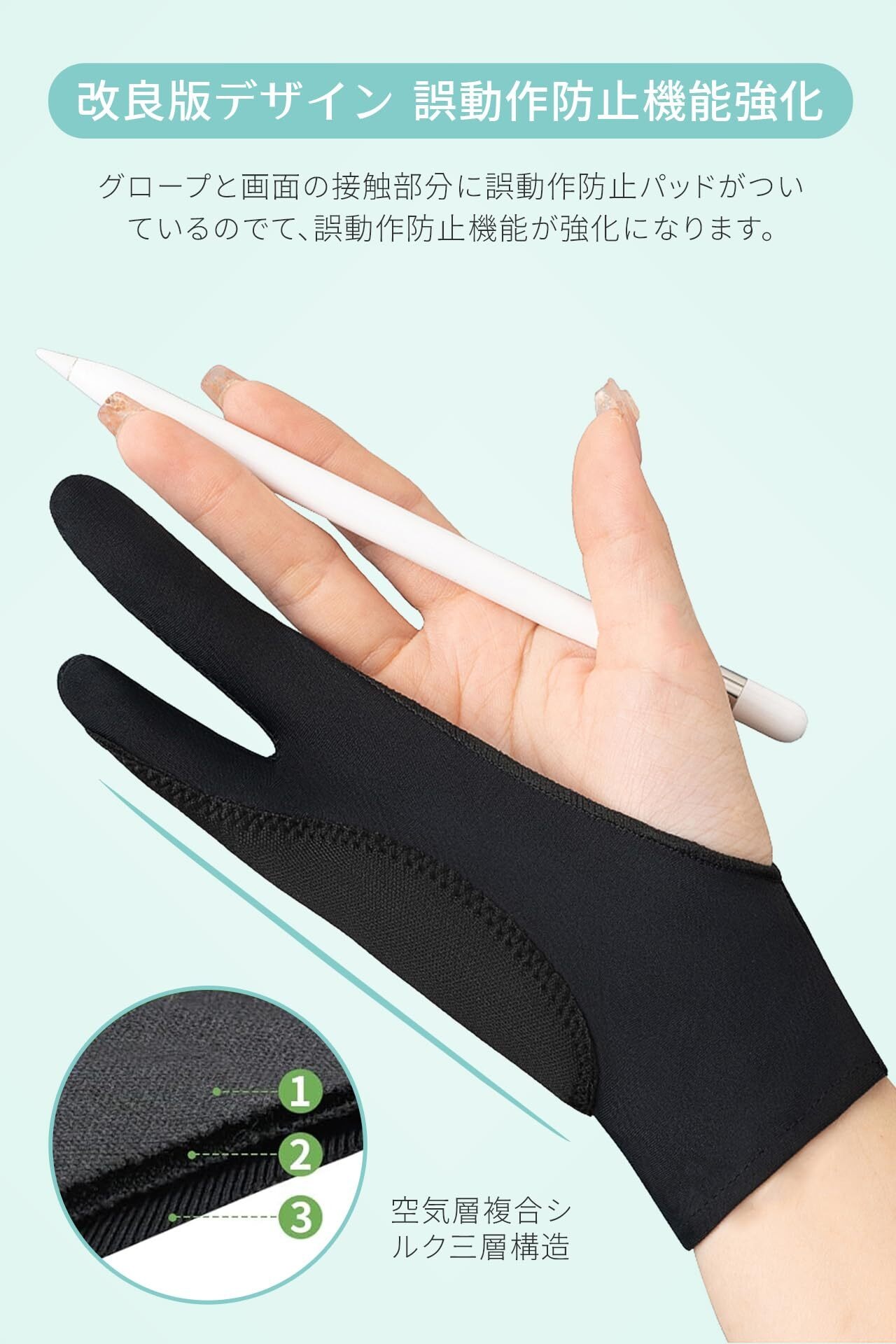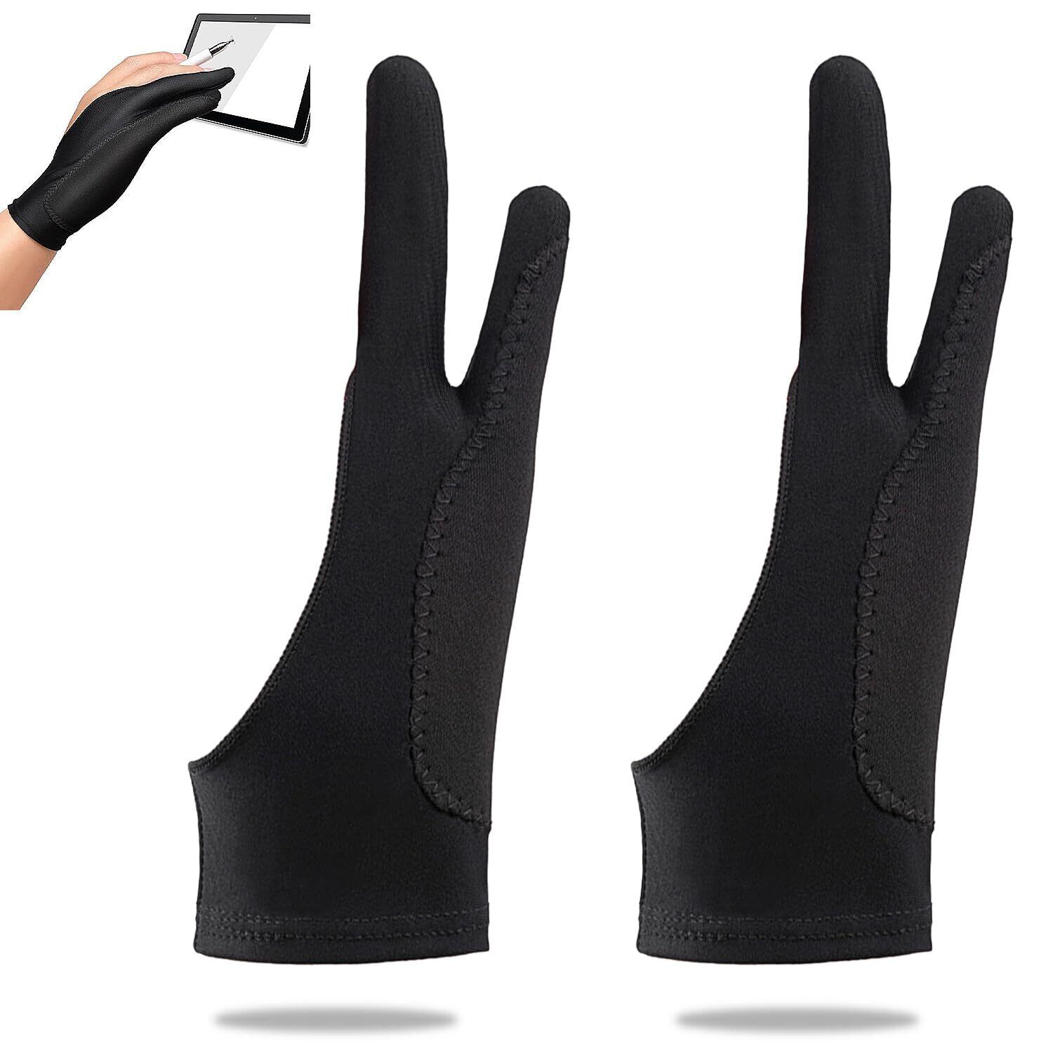 ペンタブ 手袋 二本指グローブ 2個入り ブラック S/M/L 手汗対策 滑り止め設計 誤作動防止 左利き 右利き 三重厚手 長時間着用可 柔軟素材 液晶タブレット対応 男女兼用