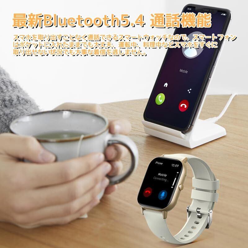 【最新Bluetooth5.4 通話機能&連絡帳同期】スピーカーと高性能マイクを内蔵し、専用アプリと接続すると、スマートウォッチから直接電話をかけたり、応答したりできるほか、携帯側の連絡帳を同期できるため、着信のお名前が表示され、誰からの電話番号が分かります。スマホを取り出すことなく通話できるスマートウォッチなので、スマートフォンはポケットに入れたままでも大丈夫、運転中、料理中などスマホをすぐに取り出せない状況でも大事な着信を逃しません。毎日の仕事や生活、ドライブに大きな利便性を提供します。