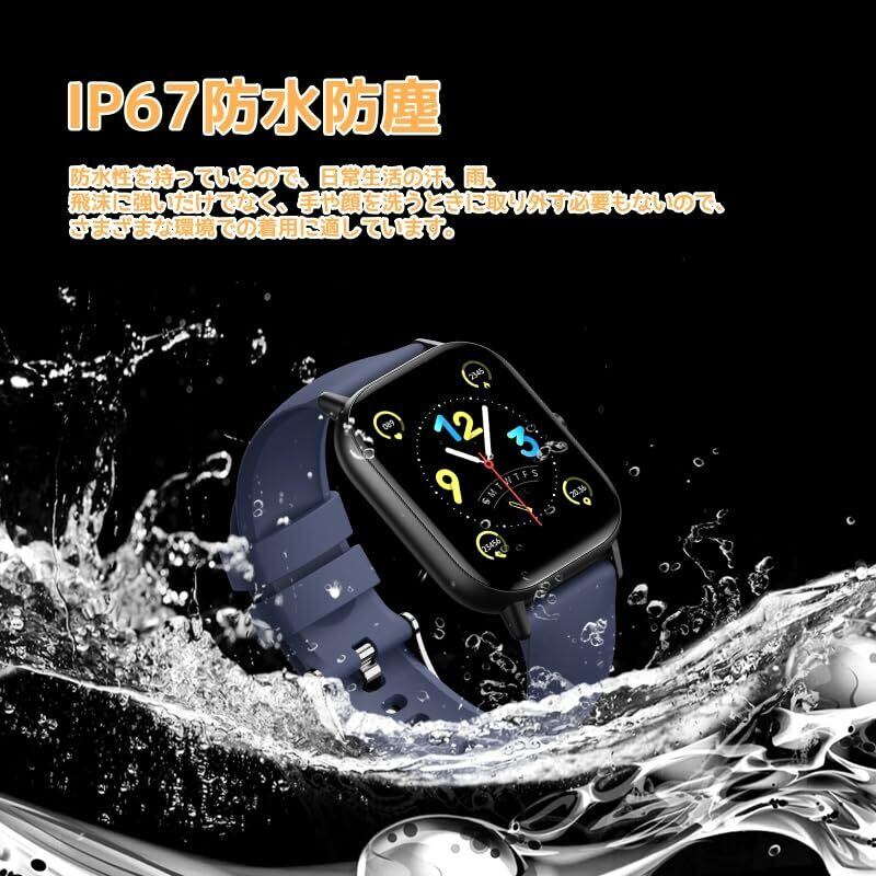 【IP67防水防塵・長持ちバッテリー・付属品】 IP67の防水性を持っているので、日常生活の汗、雨、飛沫に強いだけでなく、手や顔を洗うときに取り外す必要もないので、さまざまな環境での着用に適しています。高効率バッテリーを内蔵しているため、1回の充電で数日から1週間の使用が可能で、頻繁な充電の手間を軽減します。このスマートウォッチ 着信通知できは磁気式充電器に対応しており、ユーザーはいつでも充電するのに便利です。このスタイリッシュなスマートウォッチ 大画面は、機能が豊富で非常に費用対効果が高く、老若男女問わず、幅広い方にご利用いただいておりますので、プレゼントにも最適です。