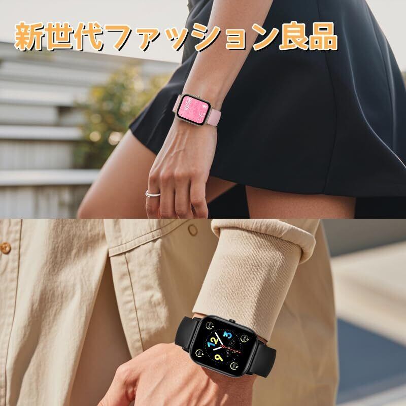 【豊富な機能搭載・百種類文字盤】 このスマートウォッチiPhone Androidに対応しており、毎日の歩数を記録するだけでなく、座りすぎを防止するリマインダー、目覚まし時計、音楽再生、天気予報、メッセージ通知やBluetooth通話など、様々な便利な機能が備わっています。日々の生活に大きな利便性と向上をもたらしています。スマートウォッチには6種類の異なるスタイルの文字盤があり、画面を長押しして左右にスワイプすることで、好みの文字盤を選択できます。その他、専用アプリに接続すると、百種類以上の文字盤を選択でき、自分の好みに合わせてインターフェースをカスタマイズできます。
