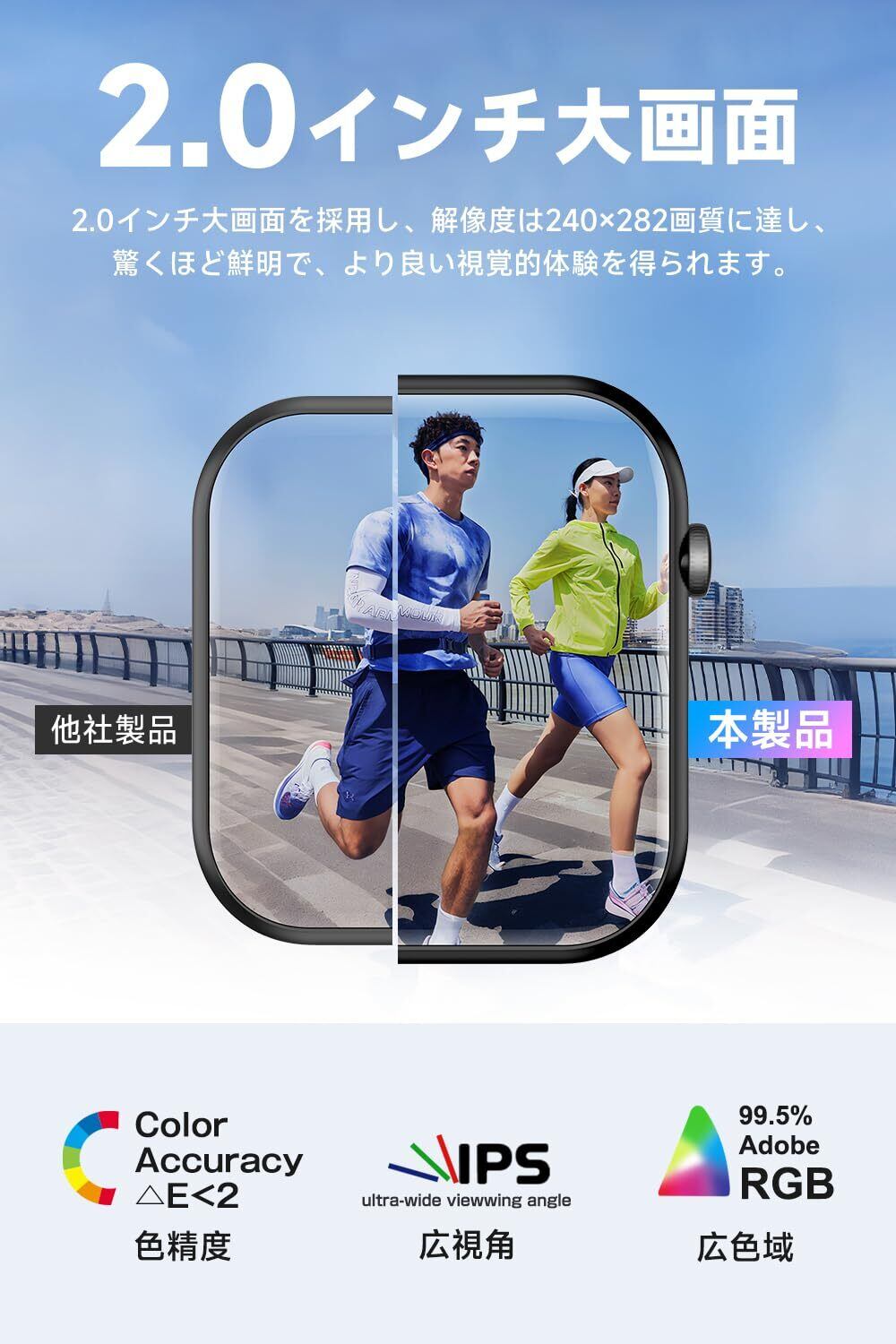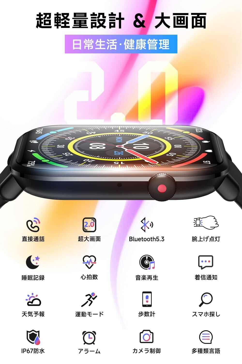 ■【2.0インチの大画面で視認性抜群!】このスマートウォッチは2.0インチの鮮明なディスプレイを搭載しており、大切な通知やメッセージを見やすく表示します。日常生活をより快適に、そしてスムーズにサポートします。✨