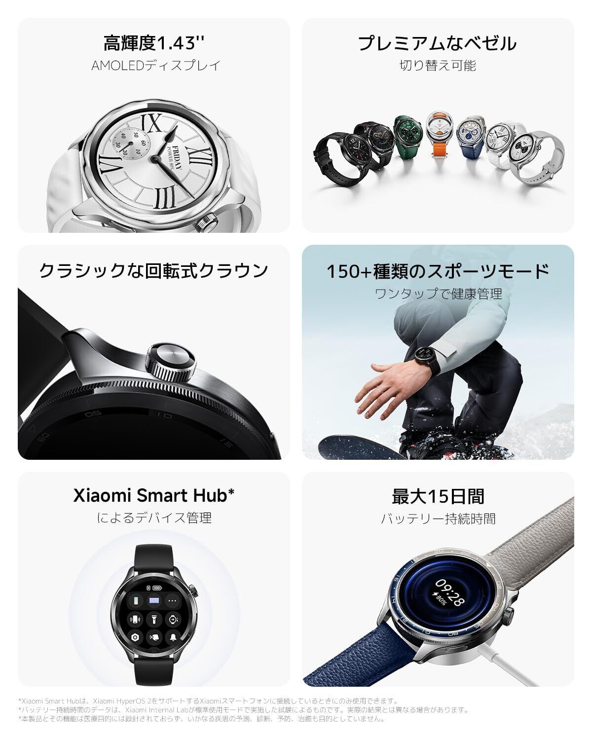 シャオミ(Xiaomi) スマートウォッチ Xiaomi Watch S4 ベゼルデザイン 1.43インチ有機EL プロスキーモード 最大15日間稼働 150種類以上ワークアウトコーチ シームレスなデバイス管理 ジェスチャー制御 GNSS搭載 ブラック