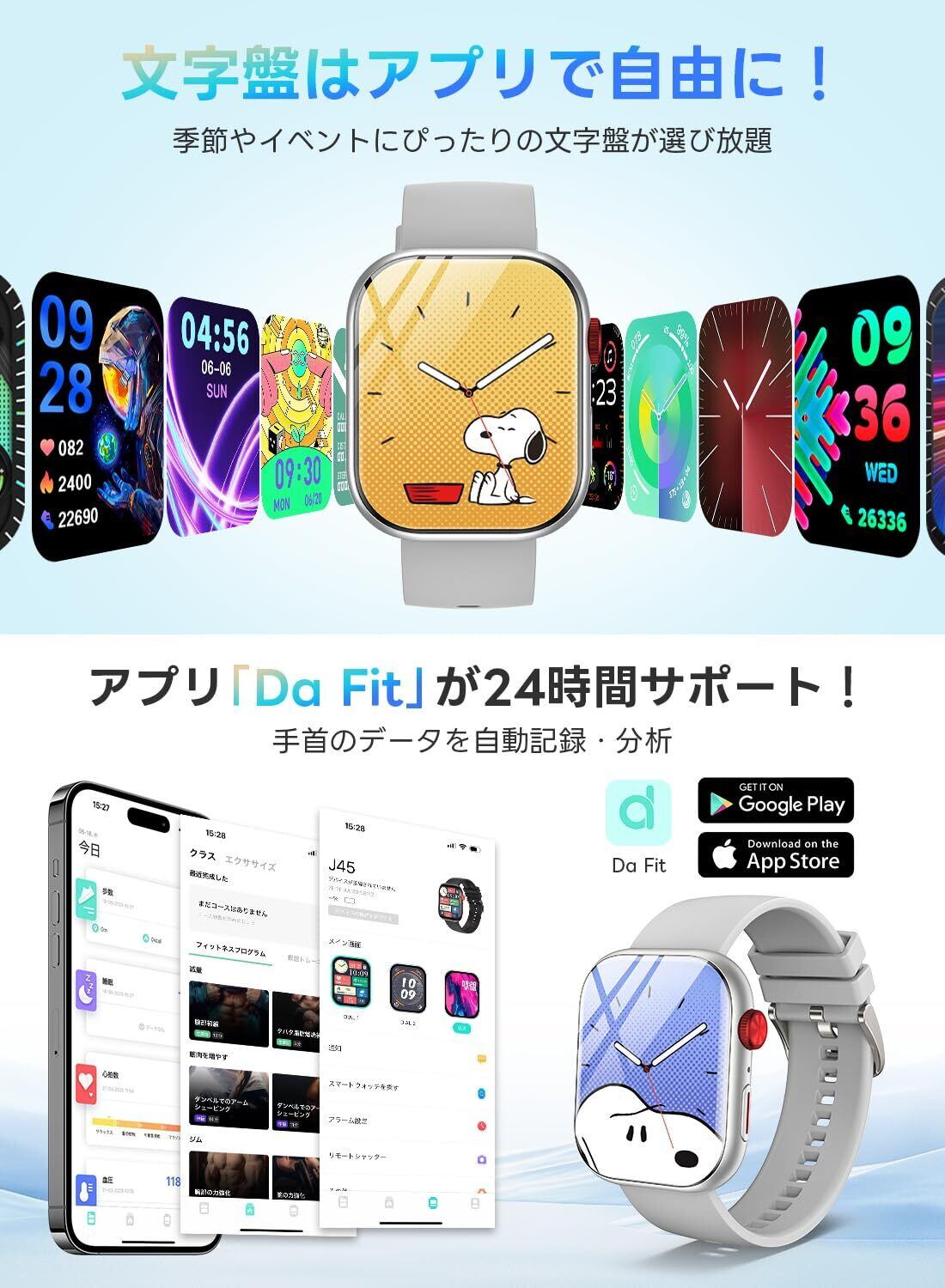 【2.01インチHD大画面&自由な文字盤カスタマイズ】2.01インチの超大画面ディスプレイを搭載し、より鮮明でスムーズな視覚体験を提供します。専用アプリ「DAFIT」を通じて100種類以上の文字盤をダウンロードできるほか、お気に入りの写真でDIY文字盤を作成し、毎日異なるスタイルを楽しめます。バンドも交換可能で、自分だけのスマートウォッチにカスタマイズできます。