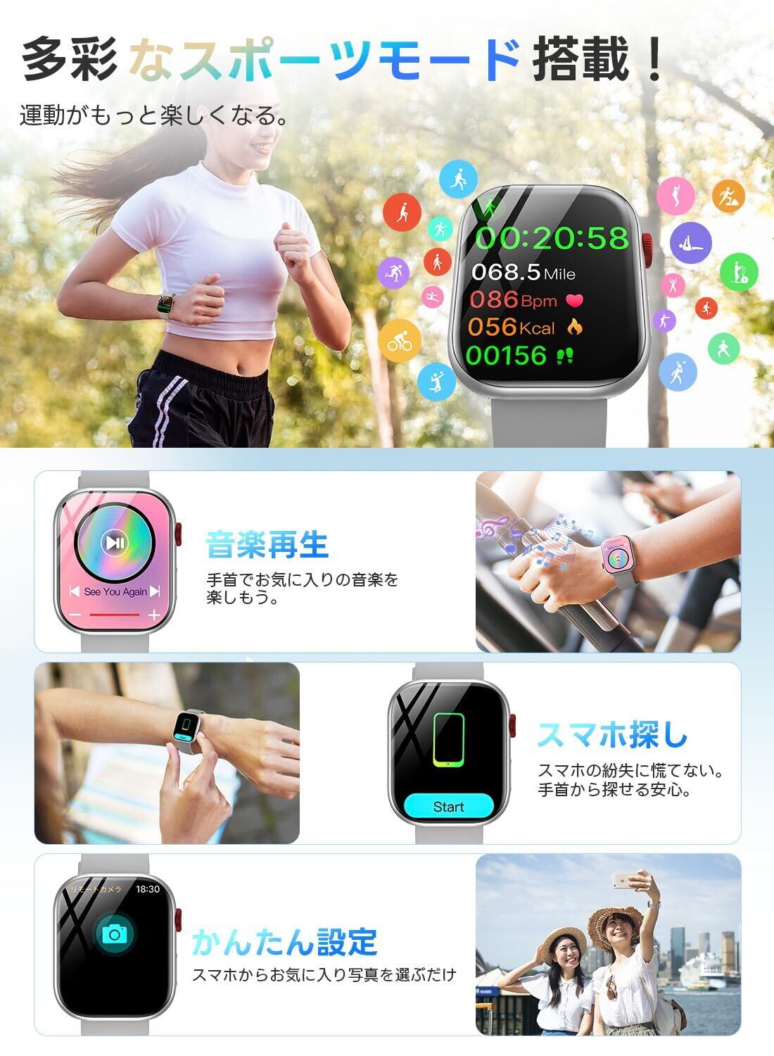 ■【進化した設計と機能を搭載したスマートウォッチ!】この2025年新登場のスマートウォッチは、2.01インチの大画面を備えており、日常生活だけでなくスポーツシーンでもお使いいただけます。見やすい画面があなたの生活をサポートします!✨
