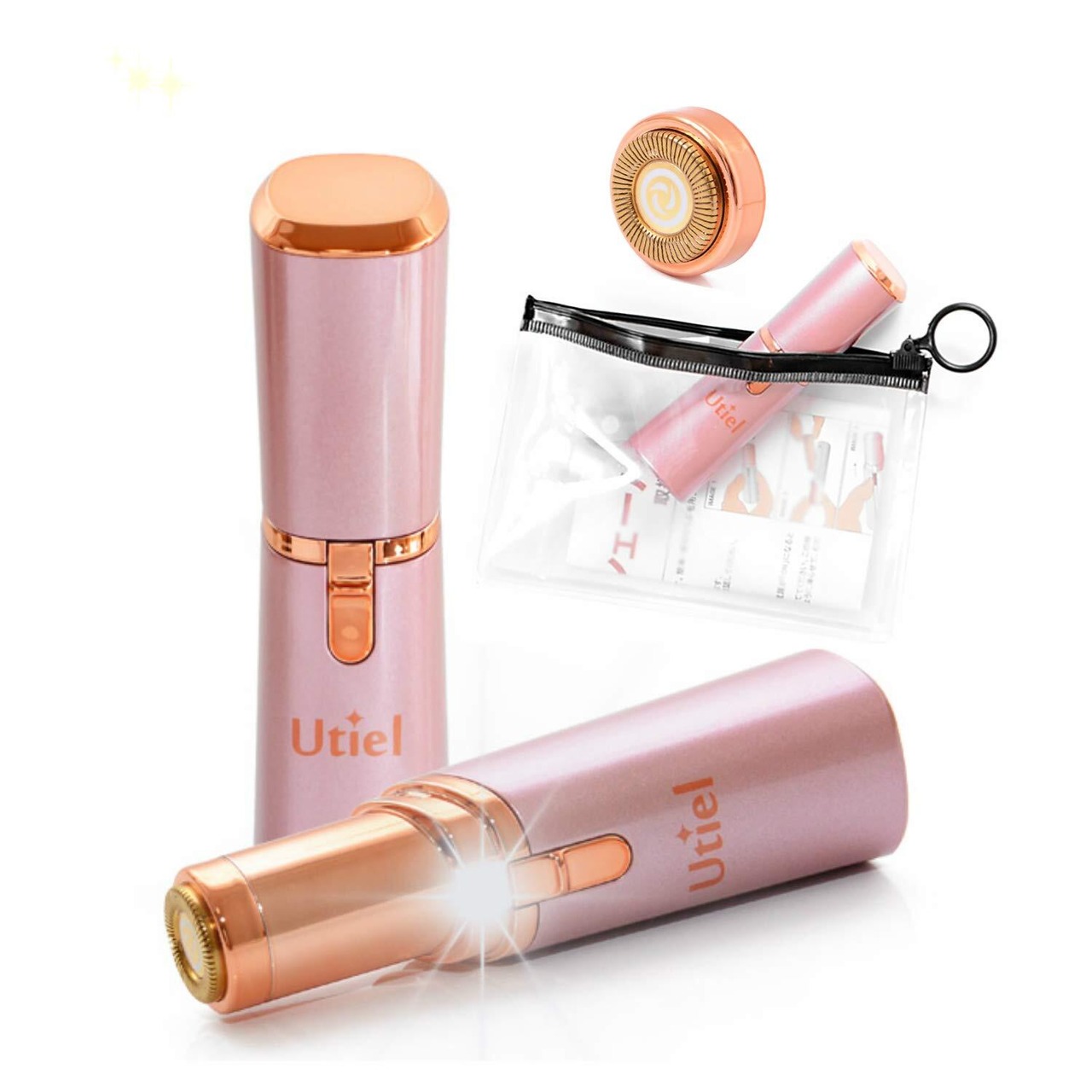 [Utiel]レディース シェーバー 女性 電動 誕生日 プレゼント ポーチ 替刃 付 防水 産毛 顔 剃り電池式 日本語説明書 (ローズピンク)
