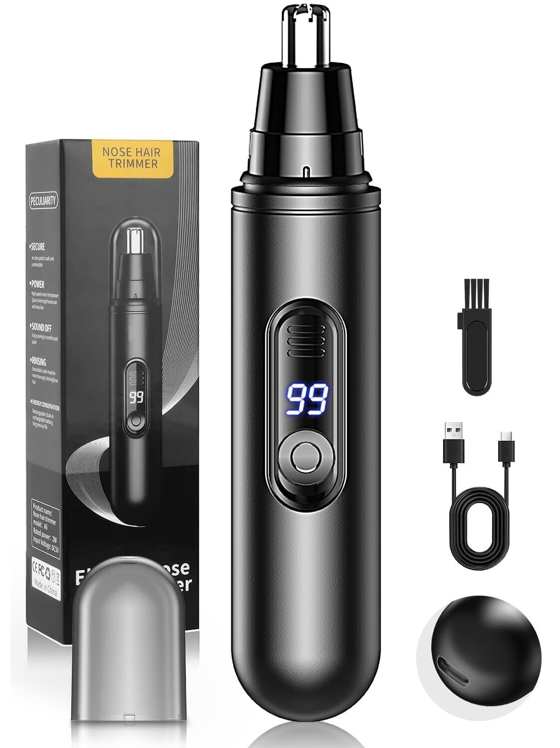 ■【Type-C充電式で手軽に使用】多機能なこの鼻毛カッターは、Type-C充電対応で、電池不要です。出先でも簡単に充電できるため、旅行やビジネスシーンでも安心して持ち運びできます!