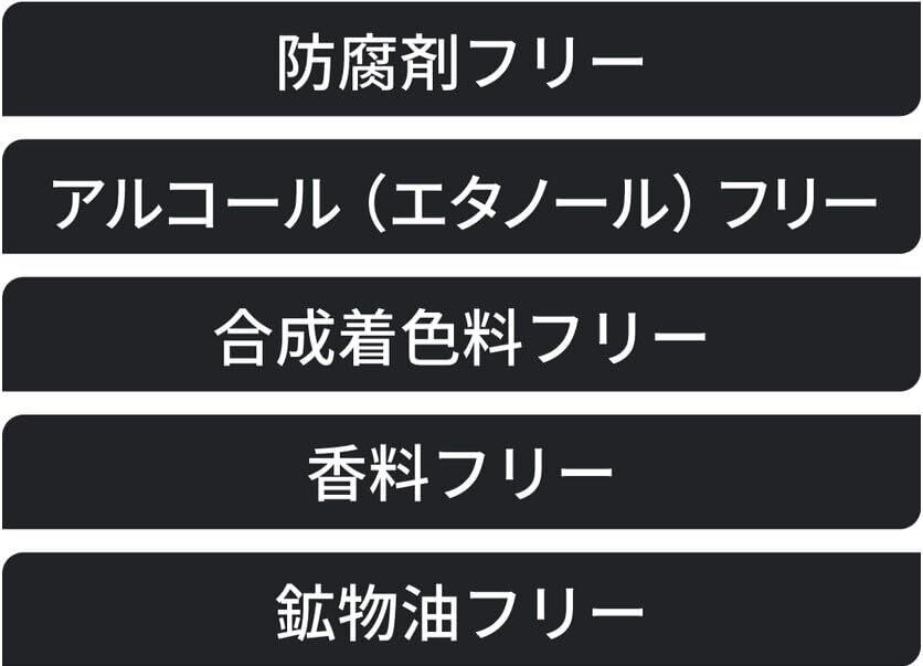 5つの(防腐剤、アルコール、着色料、香料、鉱物油)フリー