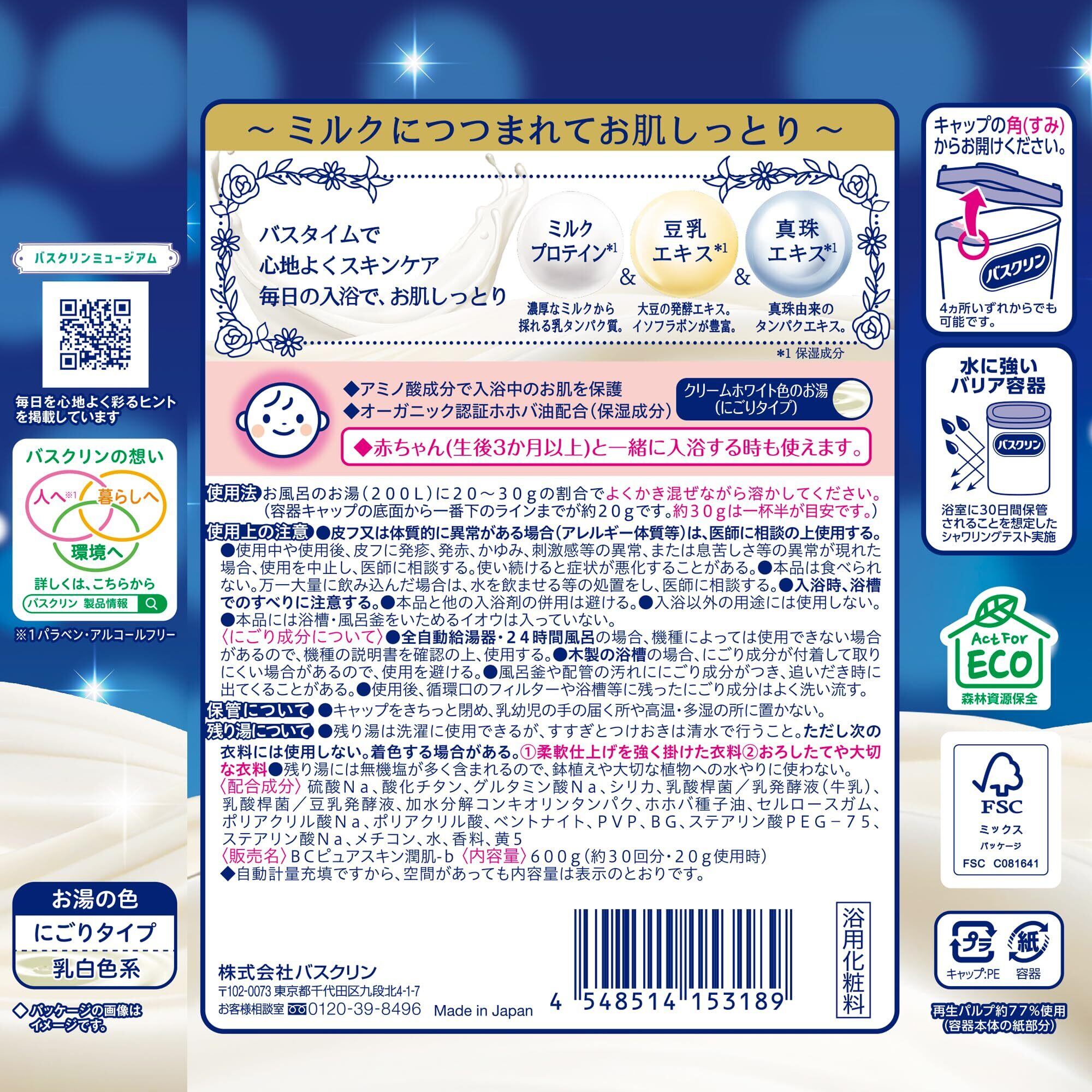 バスクリンピュアスキン入浴剤 しっとり肌600g(約30回分) スキンケアにごりタイプ
