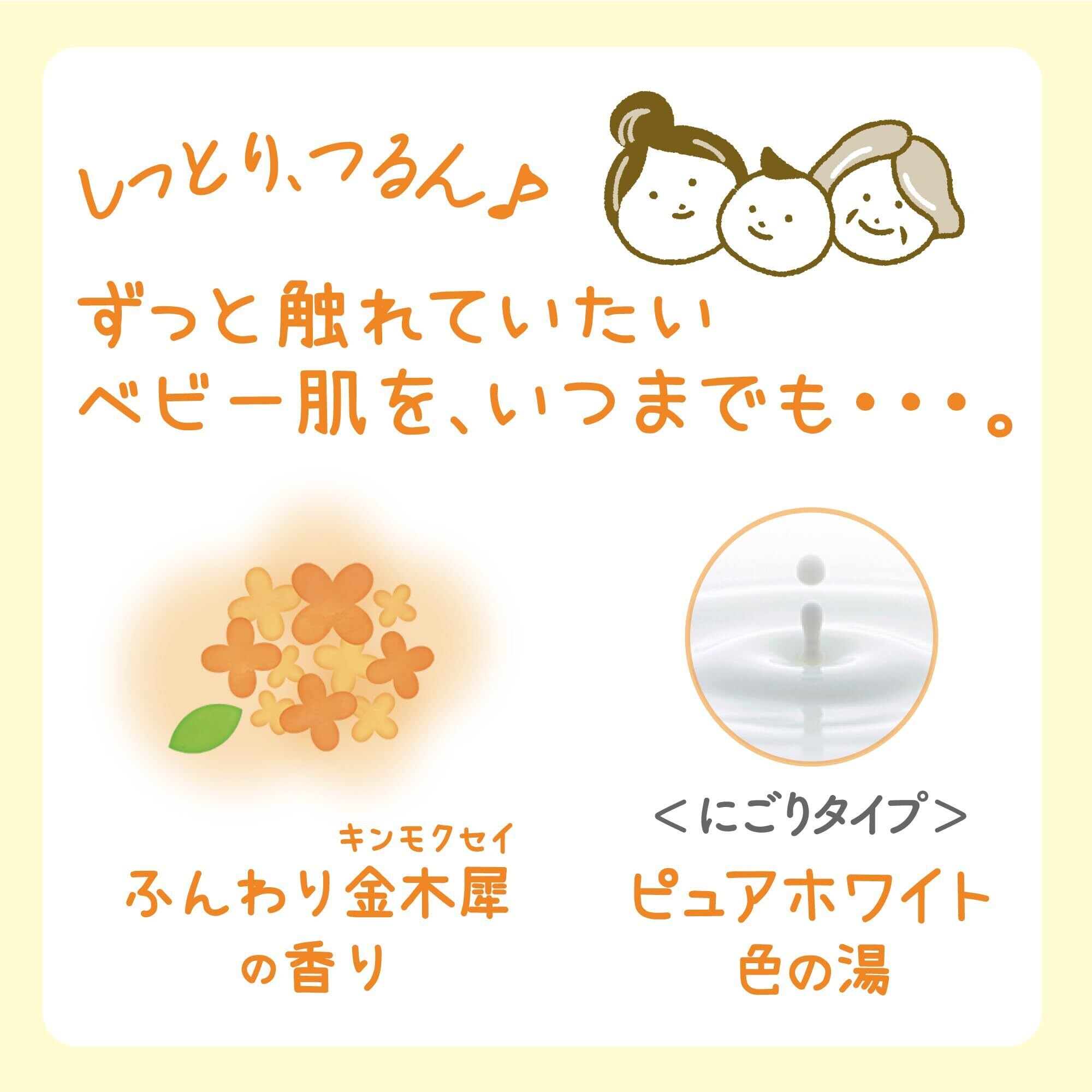 ●ソフレマイルドミーから「ふんわり金木犀の香り」。浴室にやさしく広がる金木犀の香りです。●カサカサお肌をミルク入浴液がやさしく包み、しっとり、つるんと潤います●保湿成分配合・ベビーコラーゲン配合(赤ちゃんの肌に多く含まれるといわれるIII型コラーゲン)※サクシノイルアテロコラーゲン・オーガニック認証ホホバ油配合(栽培から精製までこだわったしっとりオイル)●新生児さんの入浴テスト済●弱酸性●アルコールフリー●パラベンフリー●色素フリー●赤ちゃんの入浴にも使えます。