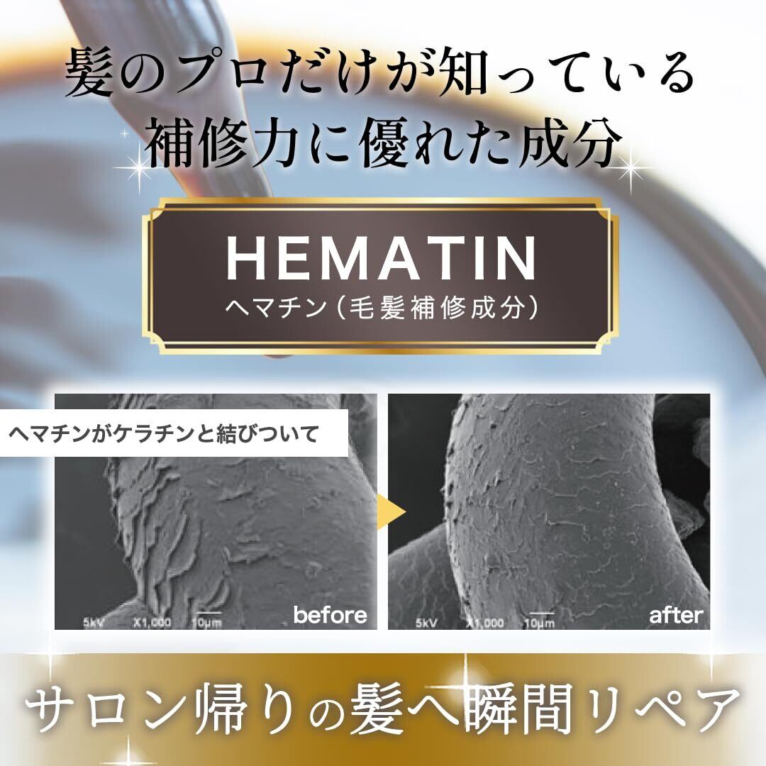■【豊富な美容成分で髪を内側からケア!】ヘマチンやプラセンタエキス、サイタイエキスなど、厳選された成分が髪にたっぷりと栄養を与え、潤いをしっかり閉じ込めます。毎日のケアで、しっとりまとまりのある美髪を実現できます。