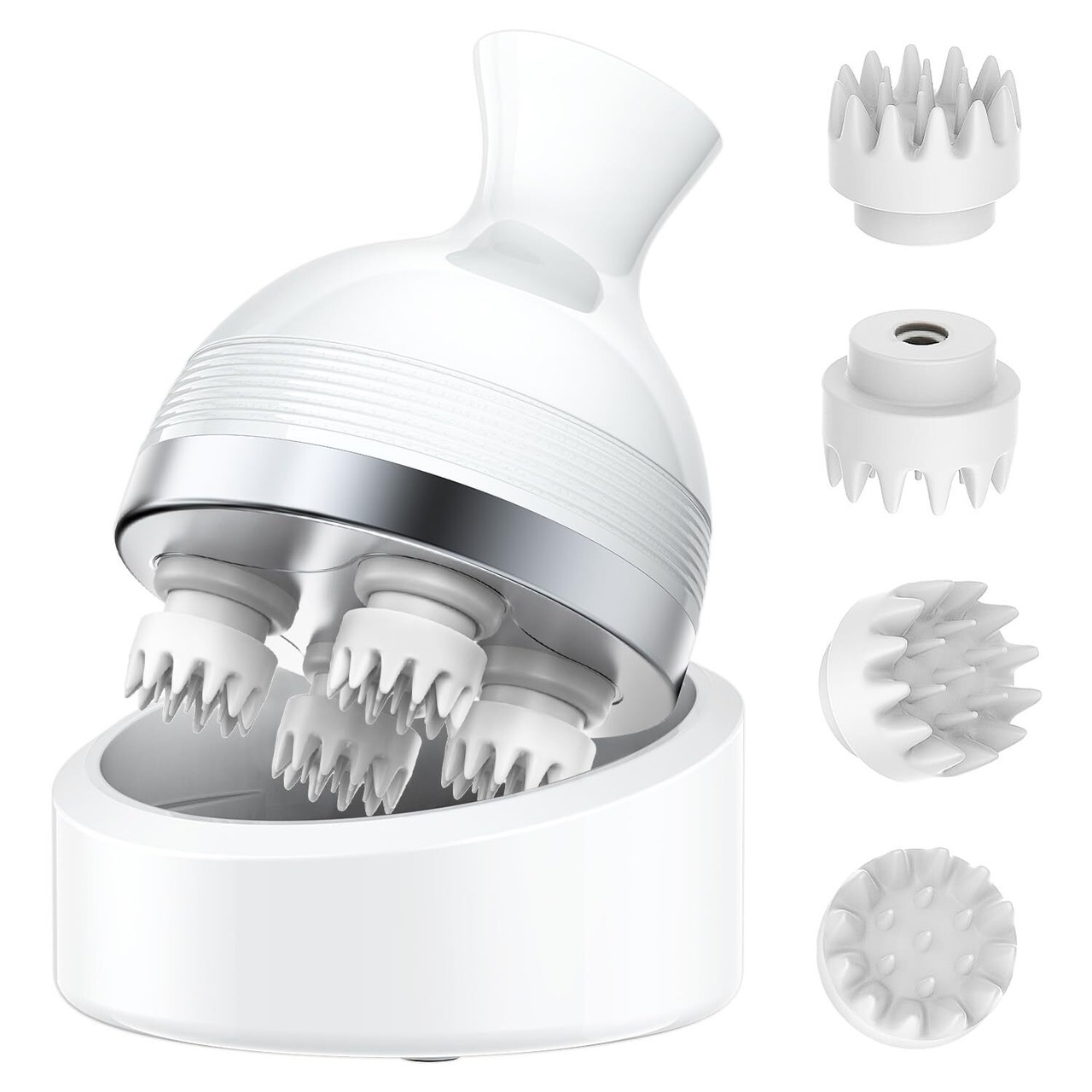 ヘッドスパ 電動頭皮ブラシ 赤青LED光 スカルプケア フェイス 3D振動&360°回転 頭皮洗浄 IPX7防水 お風呂対応 乾湿両用 コードレス 軽量設計 全身適用 リラクゼーション器 日本語説明書付き 誕生日/母の日/父の日 プレゼント ギフト