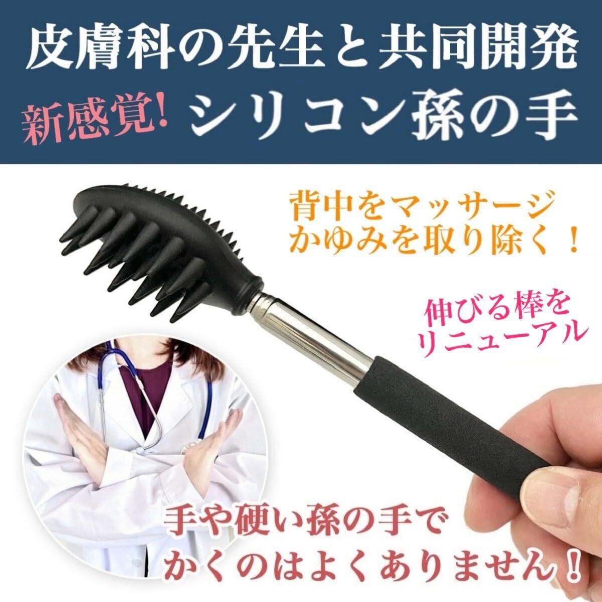 【新感覚!シリコン製孫の手】皮膚科の先生監修。手や硬い孫の手でかくのは逆効果です。専門家の意見をもとに商品化されたシリコン製の孫の手を一度お試しください。※本品は、専門家の意見をもとに、背中をガリガリかかないコンセプトの商品です。背中をガリガリかきたい方は、他の孫の手をお求めください。
