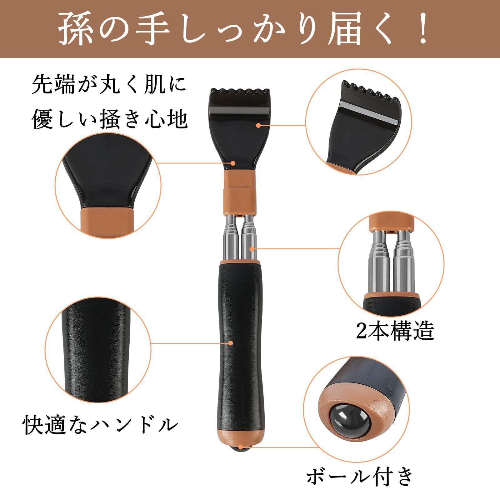 WOVTE 孫の手 伸縮 まごの手 折れにくい ステンレス製 2本構造 しっかり届く 携帯便利 伸長54cm (ブラック)