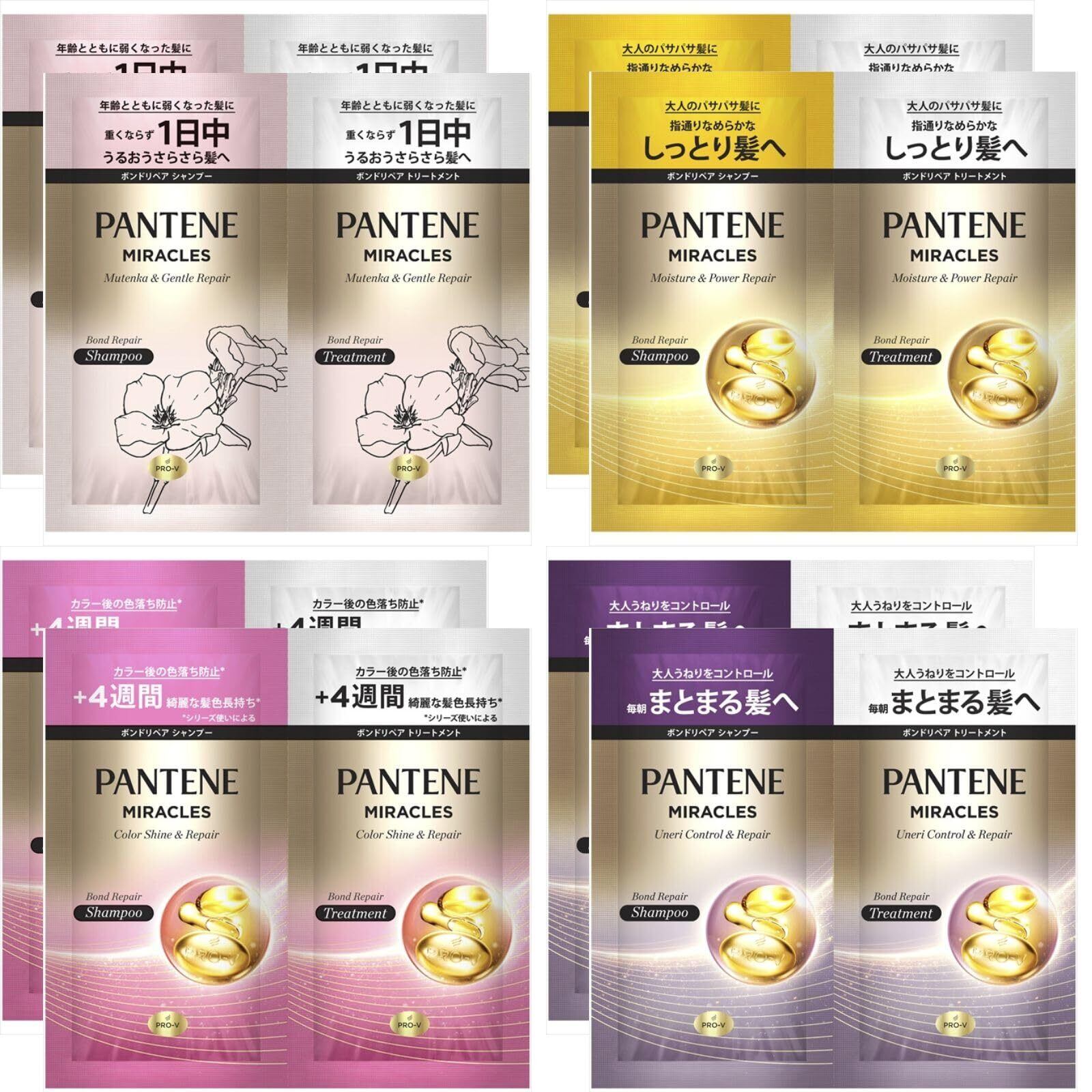 P&G パンテーン ミラクルズ ボンドリペア シャンプートリートメントセット[サルフェート無添加&ジェントルリペア/ カラーシャイン&リペア/モイスチャー&パワーリペア/うねりコントロール&リペア)]お試しサシェ8回分(4種各2枚 10mL+10g)