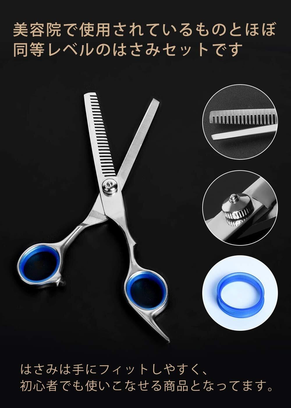 散髪 ヘアカット すきばさみ 【7点セット】初心者 美容師 理容師 プロ用高級シザー ステンレス製 すきバサミ セット セルフカット カットはさみ 専用ケース付