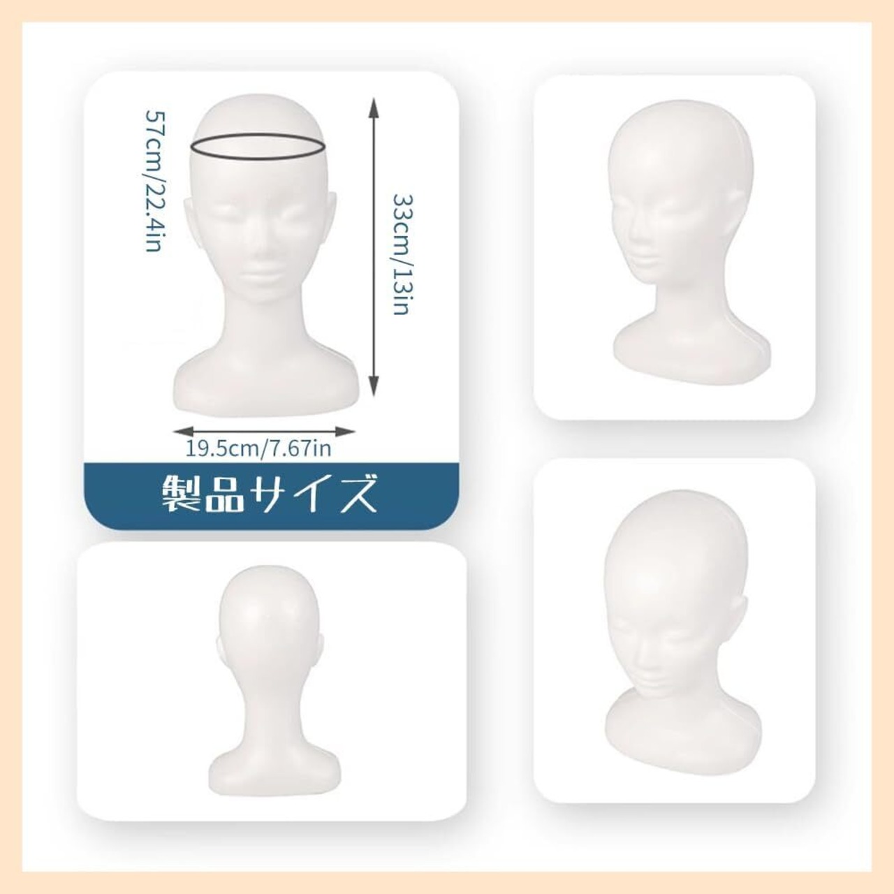 【素材】この女性用発泡スチロールマネキンヘッドは高品質のPE素材で作られており、表面は滑らかで軽量で丈夫で、持ち運びが簡単です。