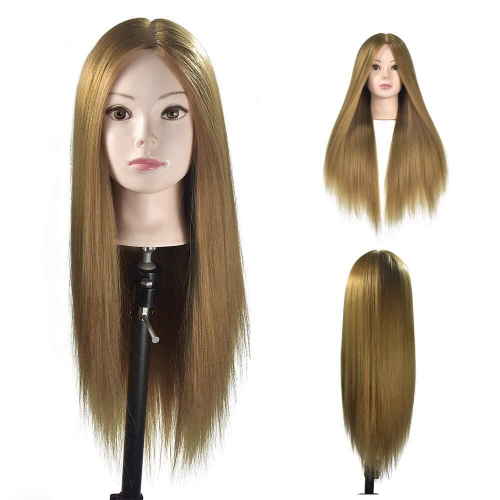 【新着商品】26インチ美容マネキンヘッドブラウン人工毛プロフェッショナル理髪トレーニングヘッドマネキン人形ヘッド無料クランプ付き
