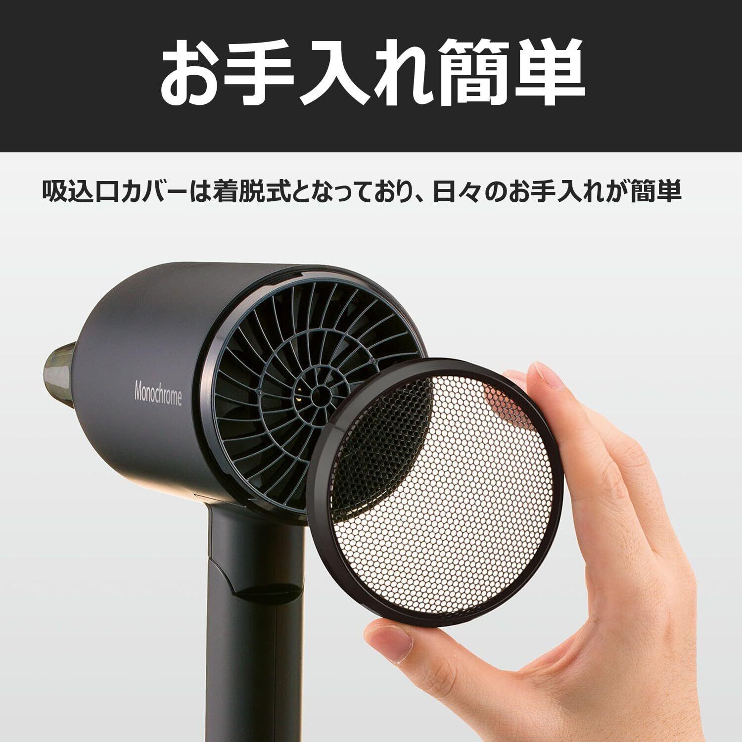 ■【高風量で速乾&マイナスイオンの力!】「コイズミ ヘアドライヤー モノクローム」は、大風量を実現し、短時間で髪をしっかりと乾かします。マイナスイオンが髪の静電気を抑え、潤いのあるしなやかな仕上がりに導きます。忙しい朝でも、スピーディーなスタイリングが可能です!