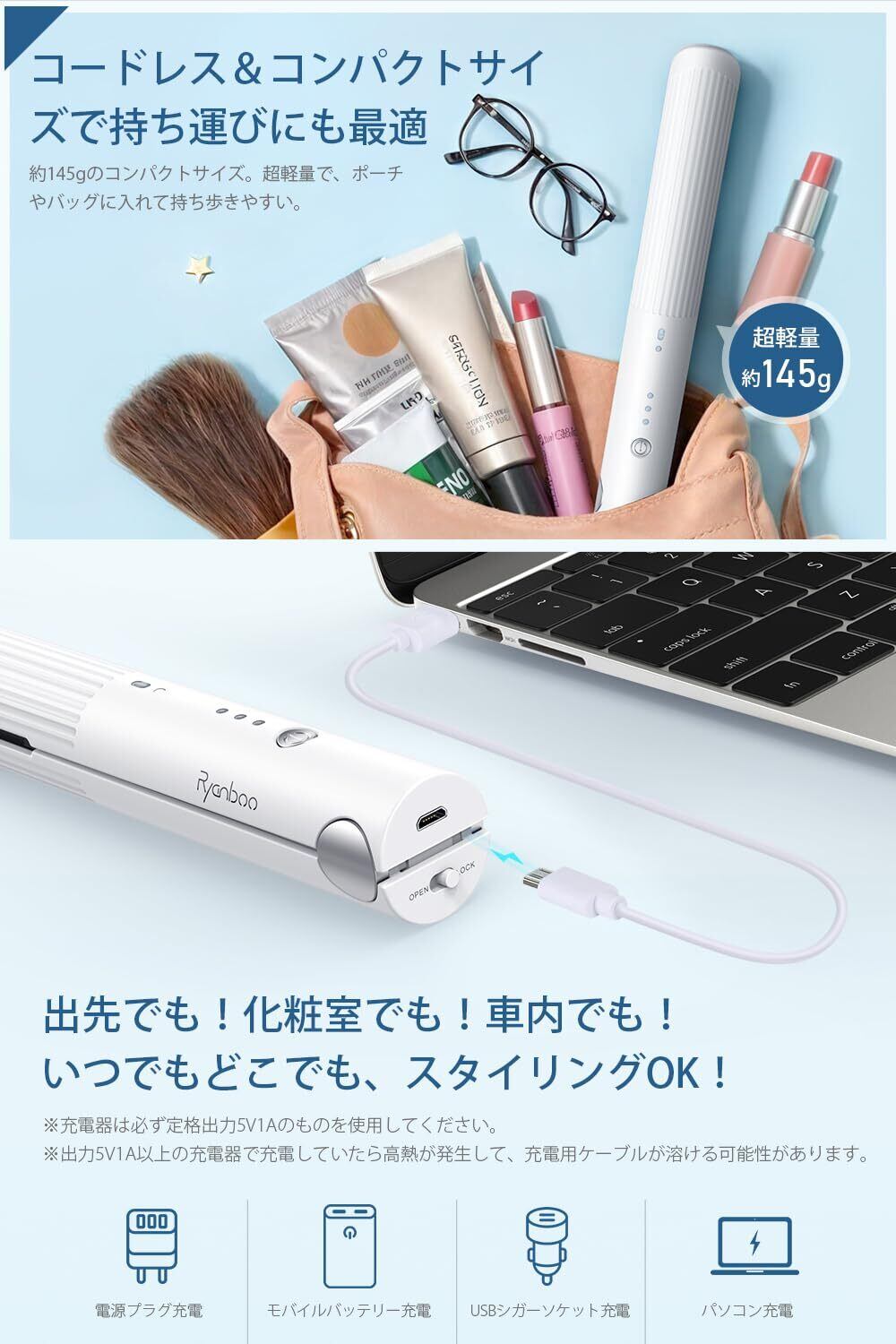 【在庫セール】Ryanboo コードレスヘアアイロン USB充電式ヘアアイロン コードレス ミニ ストレートアイロン コードレス ワイヤレス ヘアアイロン 持ち運び 3段階温度調整 MAX200℃ (White)