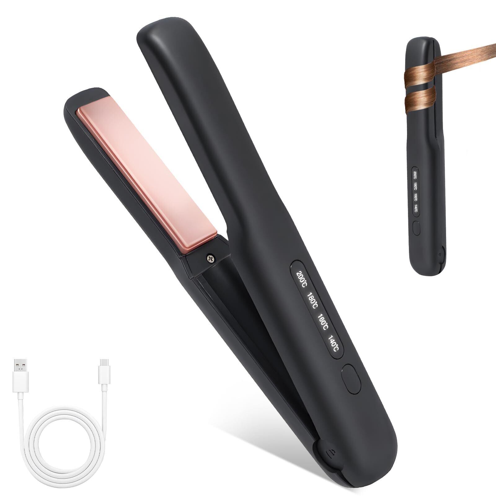 BTYEEUYI ヘアアイロン コードレス 2way カール/ストレート コードレスヘアアイロン Type-C充電 19mm 軽量 20秒速熱 140℃~200℃ 4段階温度調整 自動電源OFF 誤起動防止ロック 無線 ミニ 小型 持ち運び便利 2in1 男女兼用 日本語説明書付き 家庭/旅行/出張/通勤用 初心者向け (ブラック)