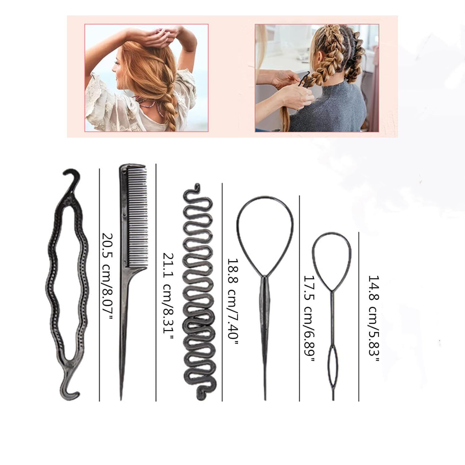 【人気商品】女の子用編み込みセット、ヘアスタイリングスティック、シンプルなヘアスタイリングツール、コーム、おだんご、レディース編み込みスタイリングツール(5点セット、ブラック) | SmartLiving+