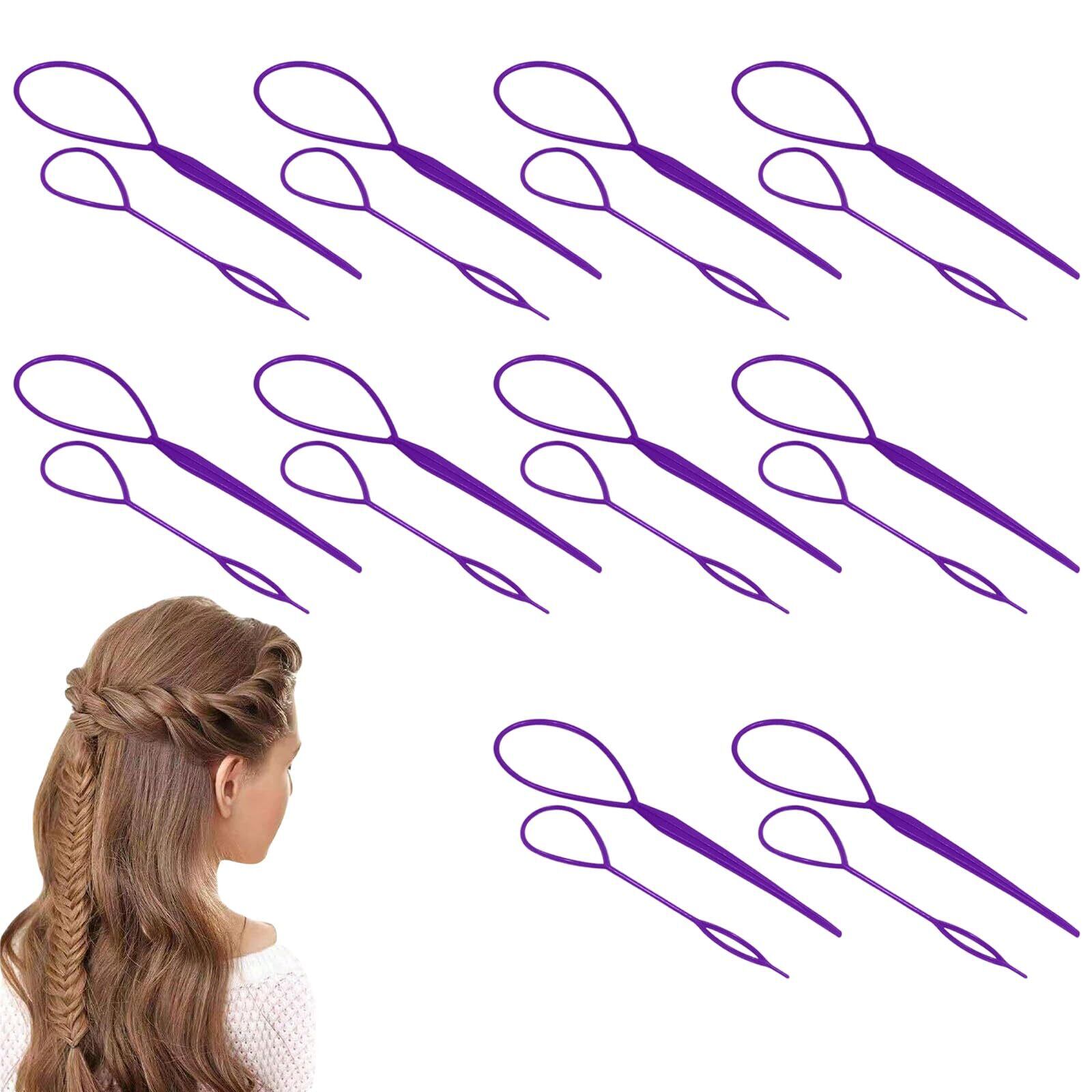 DELUXEFOX くるりんぱ スティック アレンジスティック (20個セット) オーディオファン ヘアアレンジスティック 多機能ヘアスティック お団子 髪造形 初心者 プロサロン 美容院 家庭用 業務用 大小のセット パープル