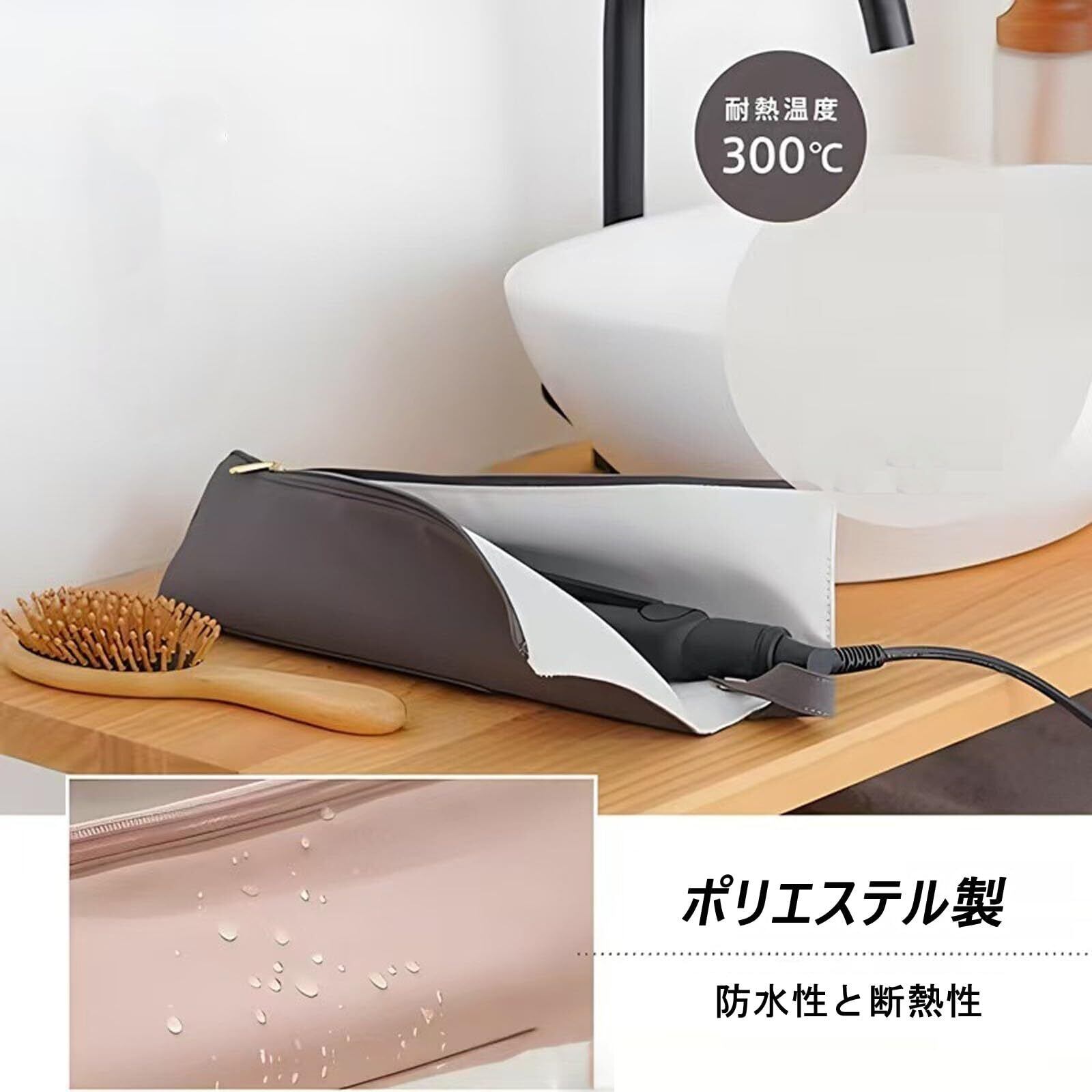 ■【すっきりとした収納と持ち運びの便利さ】このヘアアイロンケースは、コテポーチとしての機能を担い、吊り下げ収納も可能。限られたスペースでもサッと取り出せ、旅行や出張先での使用も楽々です。防水性能も備えているため、安心して使えます。