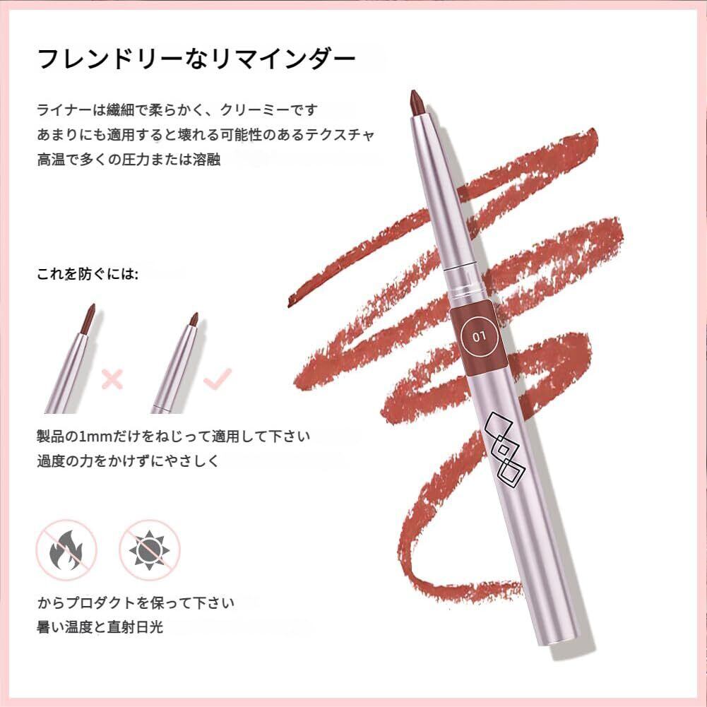 「この【リップライナーとリップスティックの2in1回転式】で、あなたの唇を華やかに演出し、自信に満ちたリップスタイルを楽しんでください!」