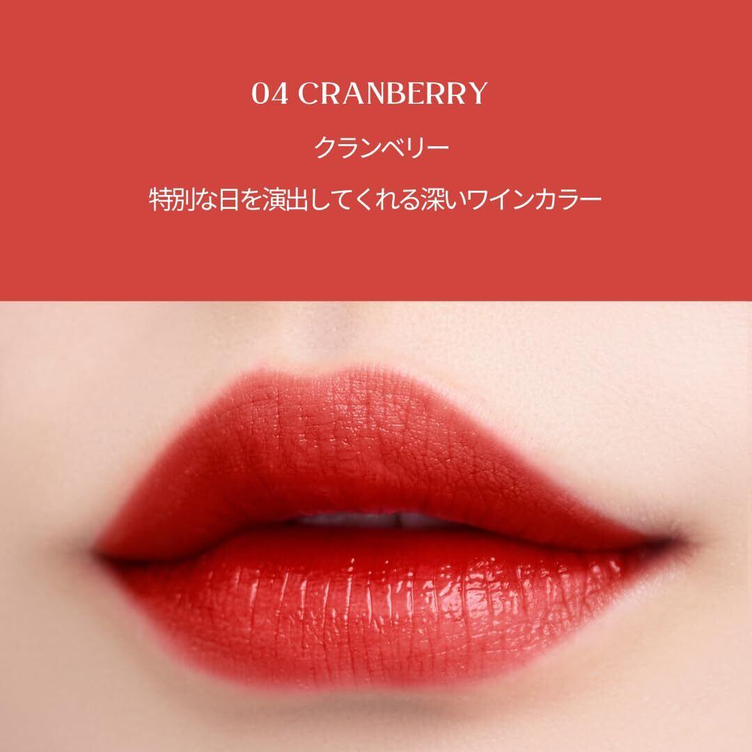■【クランベリーの甘美なカラーで魅力的な唇を演出!】「JUICY LIBTINT」の04 クランベリーは、リッチで深みのあるニュアンスカラーが特徴。デイリーメイクから特別なシーンまで、鮮やかな発色であなたの魅力を引き立てます!