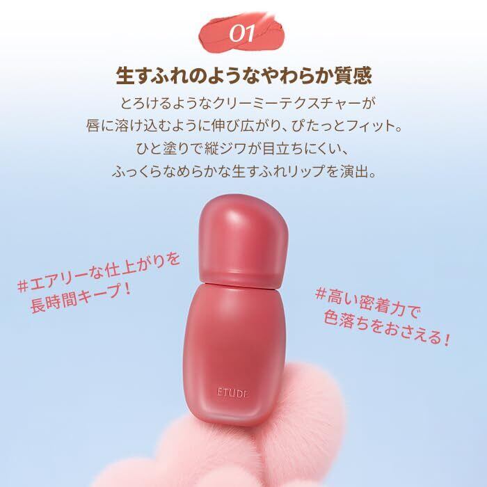 「この【ETUDE ソフトフィクシングティント】で、あなたの唇にフレッシュで洗練された色合いを与え、素敵なリップスタイルをお楽しみください!」