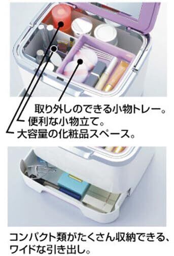 ●取り外しのできる小物トレー。口紅やコットン、綿棒などがきれいにおさまる