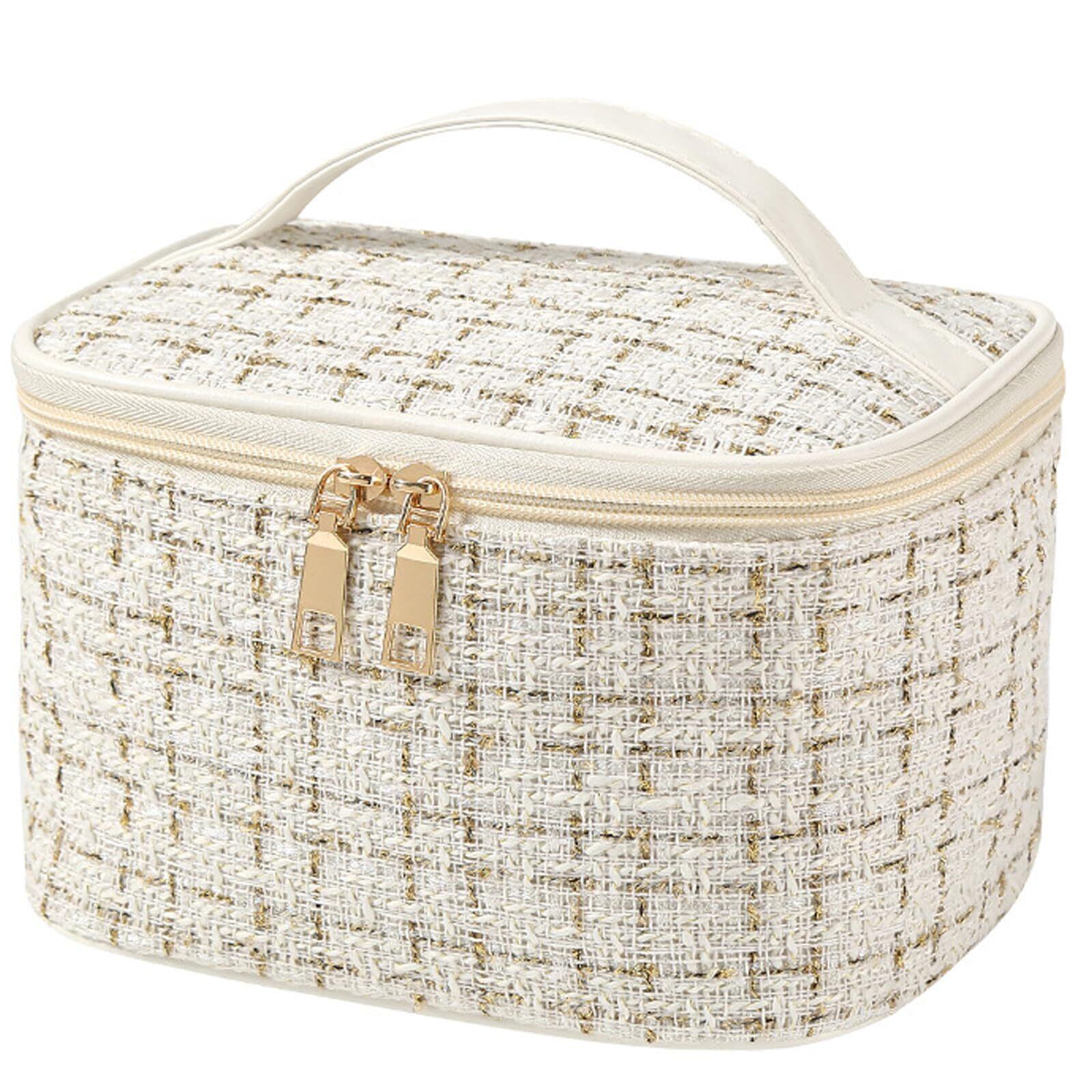 Gevlonecirly 化粧ポーチ 大容量 メイクポーチ 化粧品バッグ 広口 収納ポーチ メイクバッグ 人気 多機能 手提げ メイクアップポーチ おしゃれ 旅行用 コスメ収納 携帯に便利 (White-白)