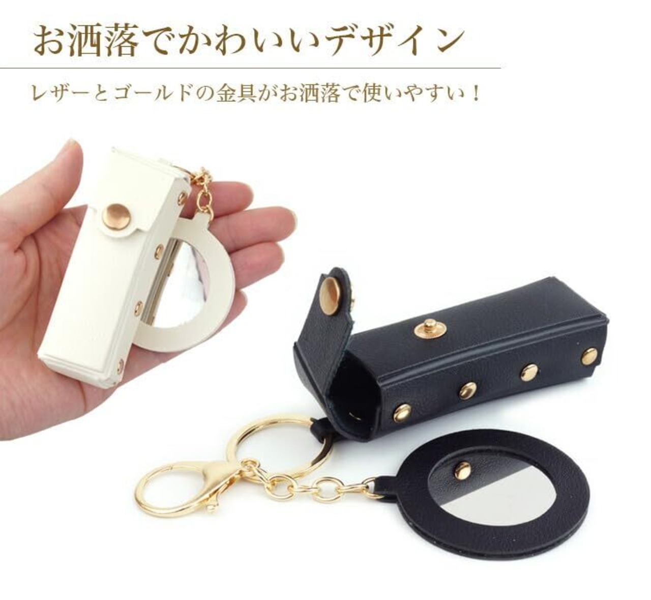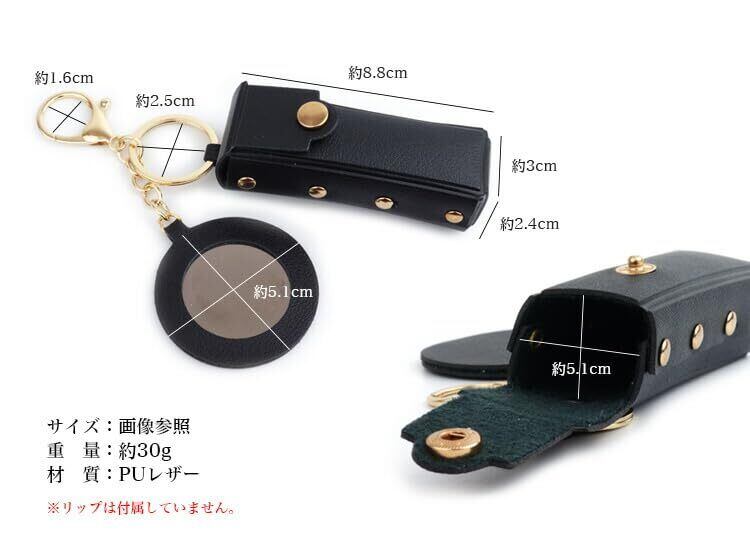 prendre リップ ケース ミラー 付き ホルダー コンパクト 小物 収納 ミニ ポーチ 口紅 メイク 化粧品 持ち運び リング 携帯 (ブラック) PR-MIRLIPCA-BK