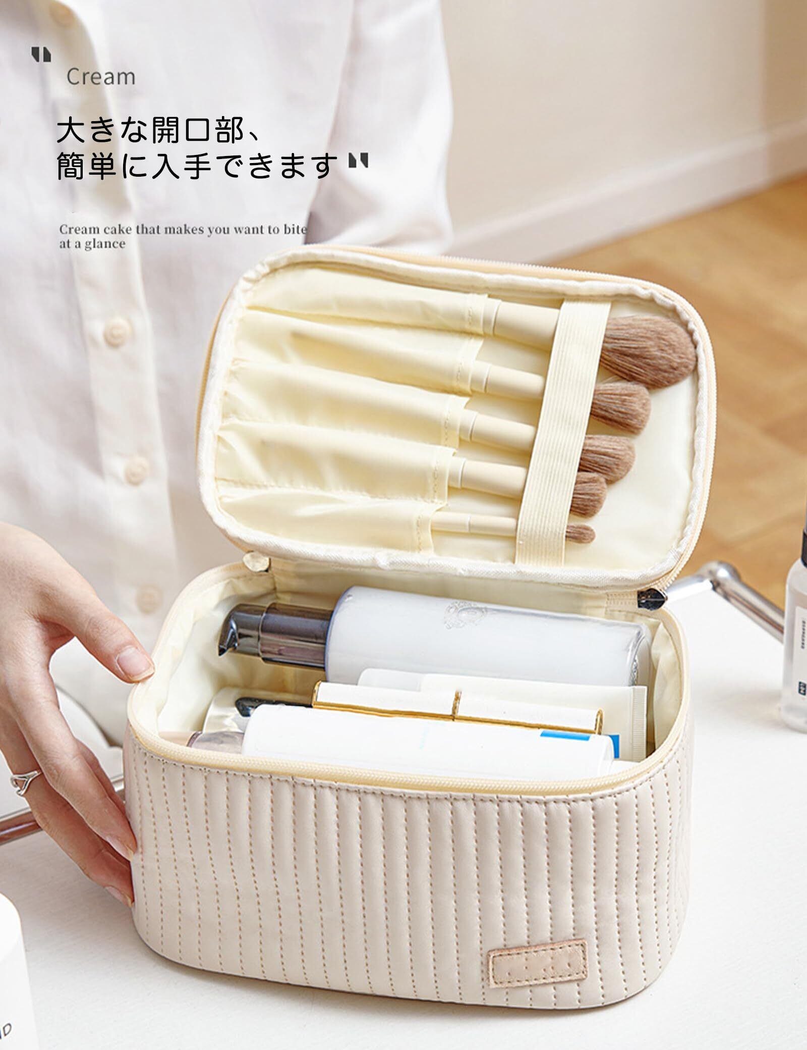 ■【収納力抜群の大容量!】内部は多くの仕切りやポケットがあり、化粧品や小物をすっきり整理できます。必要なアイテムが簡単に見つかるので、忙しい朝でも手間いらずでメイクを楽しむことができます!