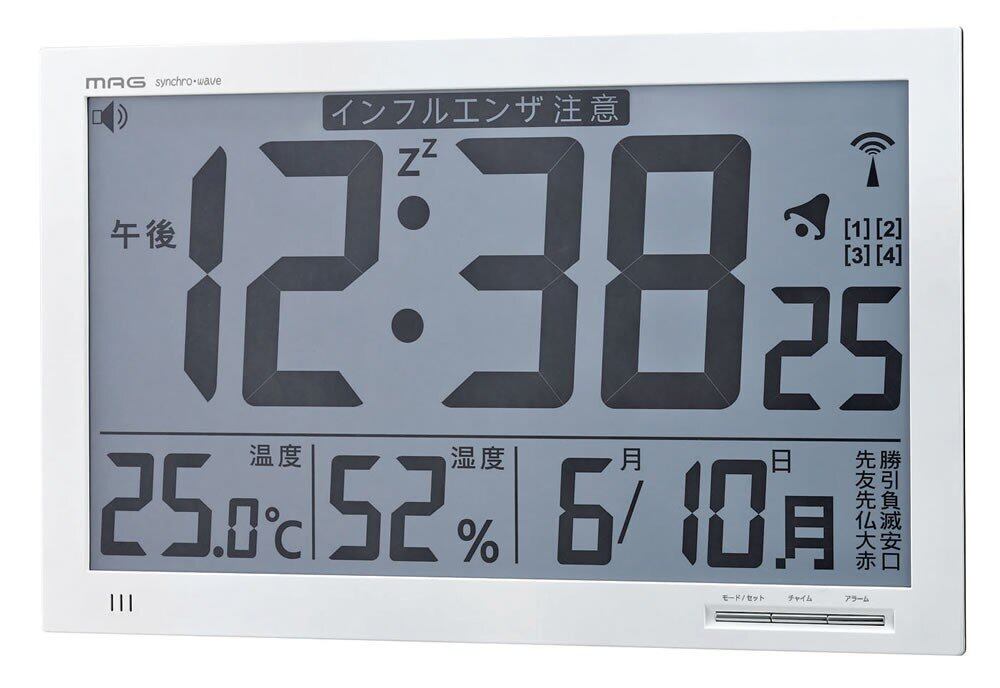 MAG(マグ) 掛け時計 デジタル 電波時計 オフィス プログラム アラーム 大型 大きい 縦約23.0×横約37㎝ 環境目安 熱中症 インフルエンザ 乾燥 快適 警報 カレンダー 六曜 ホワイト メルスター W-602 WH ノア精密